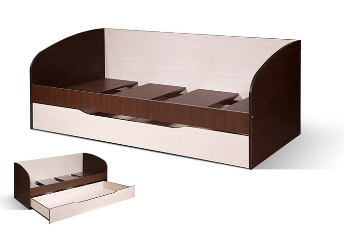 Кровать-тахта ― это прекрасное решение для комнаты: благодаря наличию мягкой спинки, ее можно использовать в качестве дивана, а выдвижной ящик может служить дополнительным спальным местом. Незначительная высота спальных мест и отсутствие острых углов - это комфорт и безопасность.