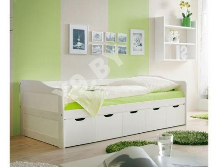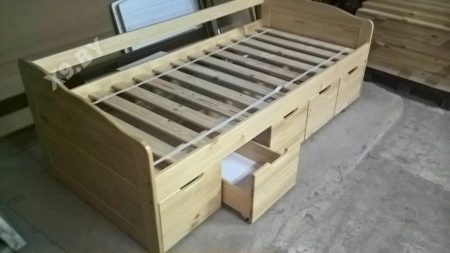 код 88435Детская кровать из массива сосны с пятью вместительными шуфлядами.