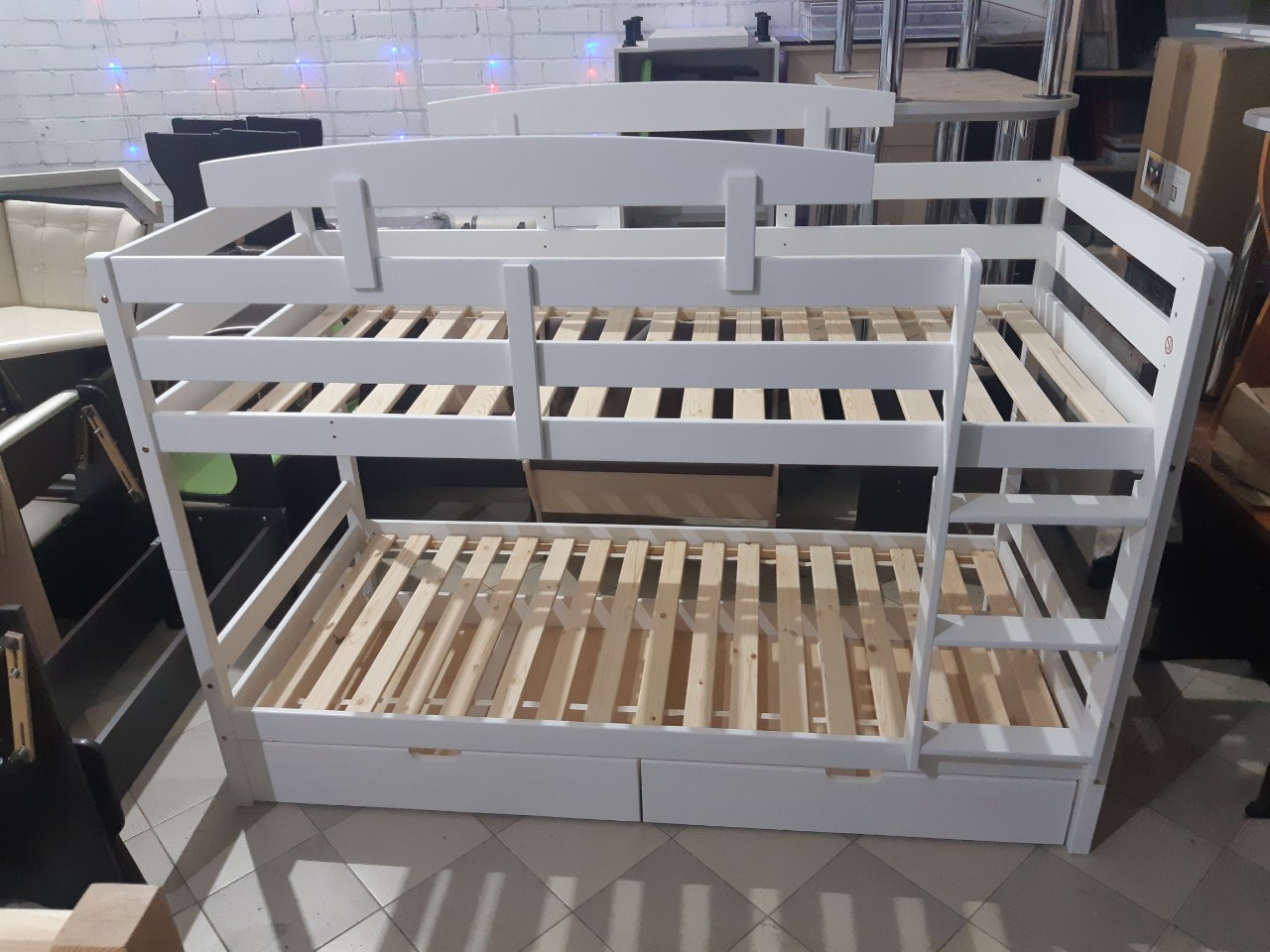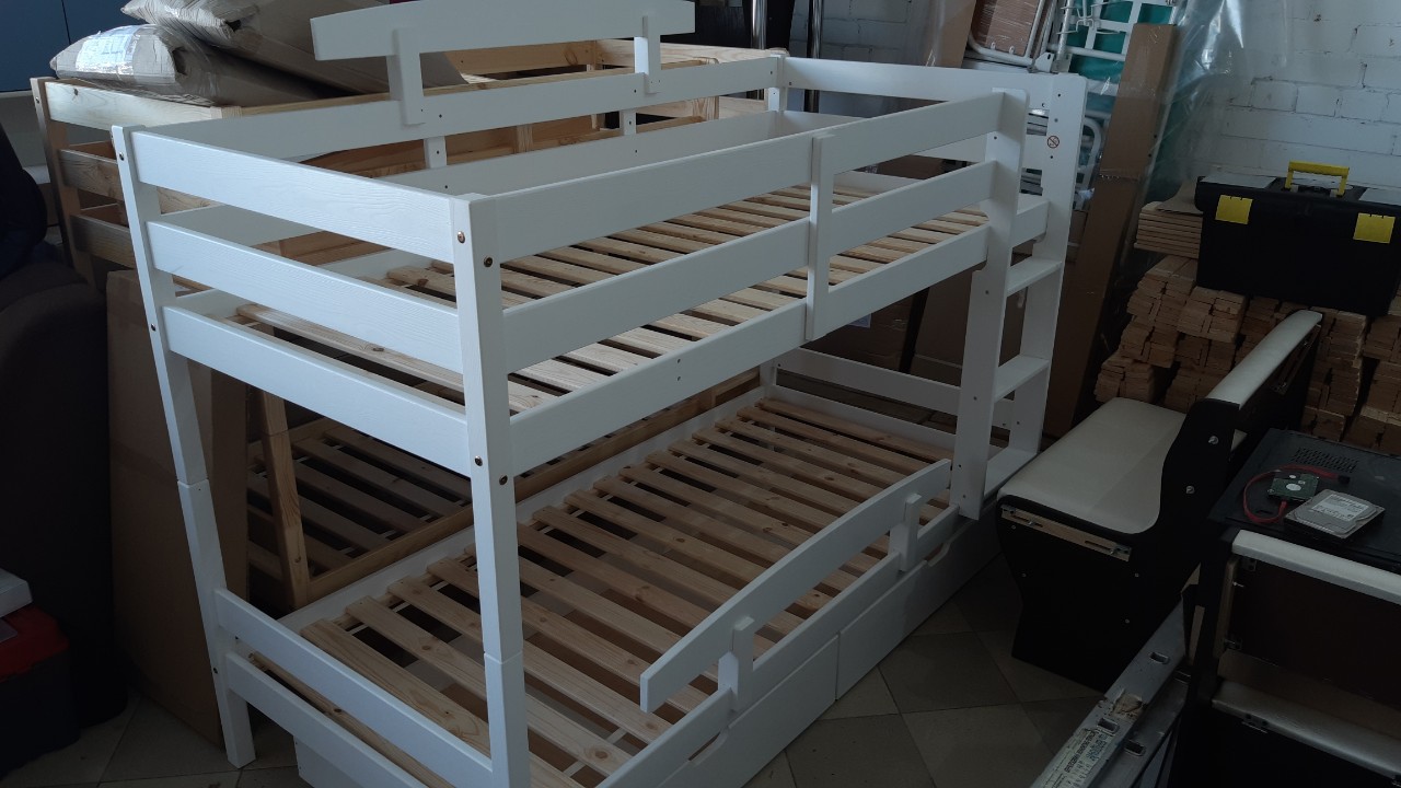 Двухъярусная кровать из массива сосны «Вуди-3» без ящиков (белый)