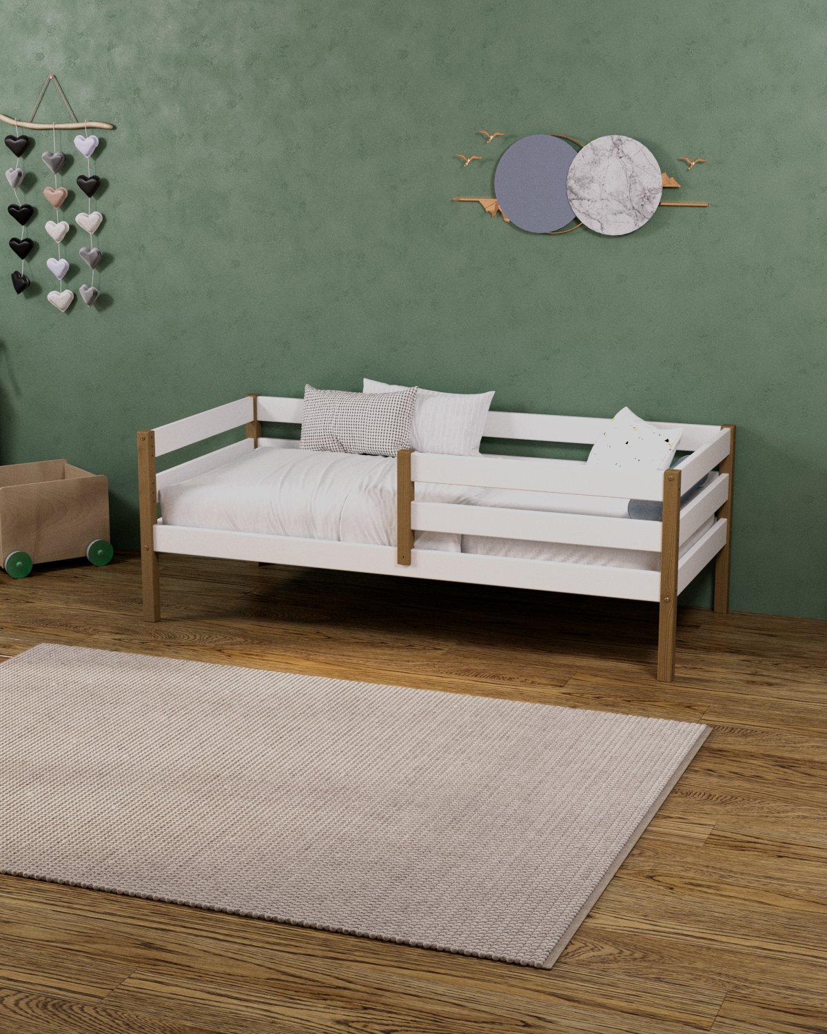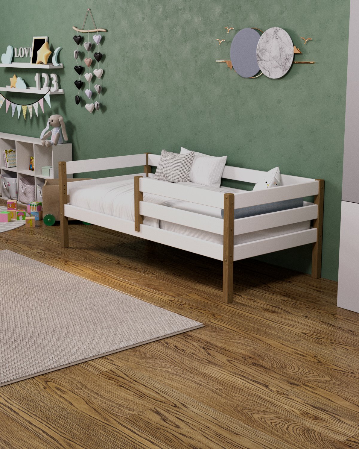 Размеры кровати идеально подходят как для маленького, так и более взрослого ребенка, обеспечивая достаточное пространство для комфортного сна. При этом кровать легко впишется даже в небольшую комнату, не отнимая лишнего места.