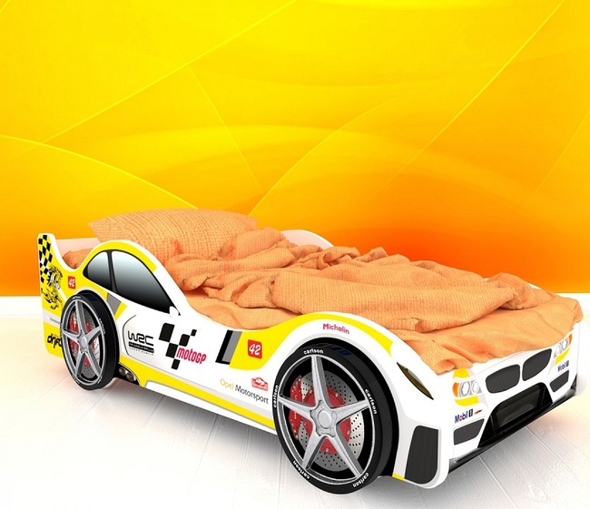 код 84296Лаконичный дизайн спортивной машинки с белыми, желтыми и черными полосками.