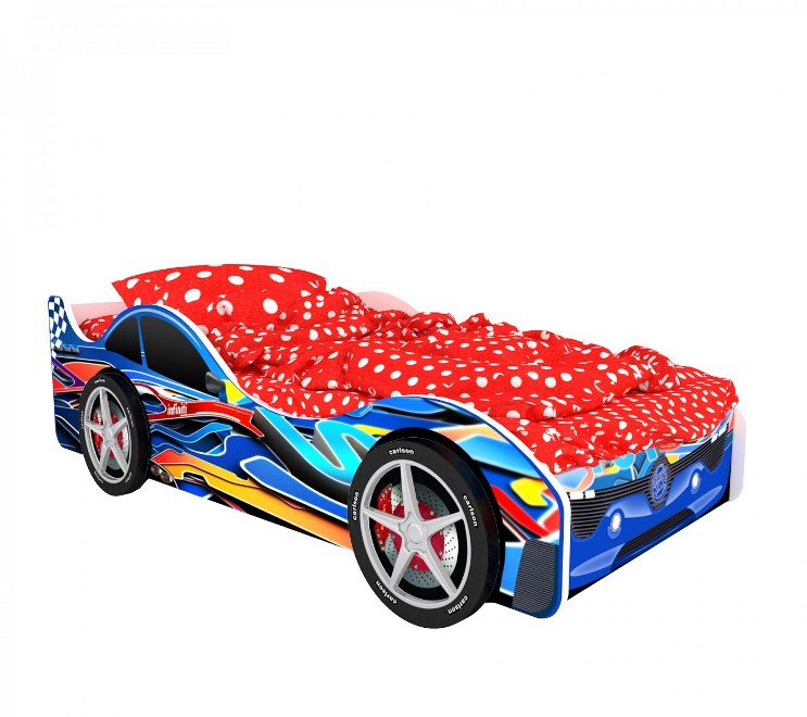 В производстве используются: безопасная ультрафиолетовая объемная фотопечать экокрасками на пленке; сверхпрочные деревянные латы в основании кровати, выдерживающие нагрузку до 200 кг; светодиодная подсветка дна с напряжением 12В без нагревания. Колеса, матрас и светодиодная подсветка заказываются отдельно. Сборка кровати-машинки занимает в среднем 10-15 минут. Подробная инструкция и необходимые инструменты прилагаются в комплекте.