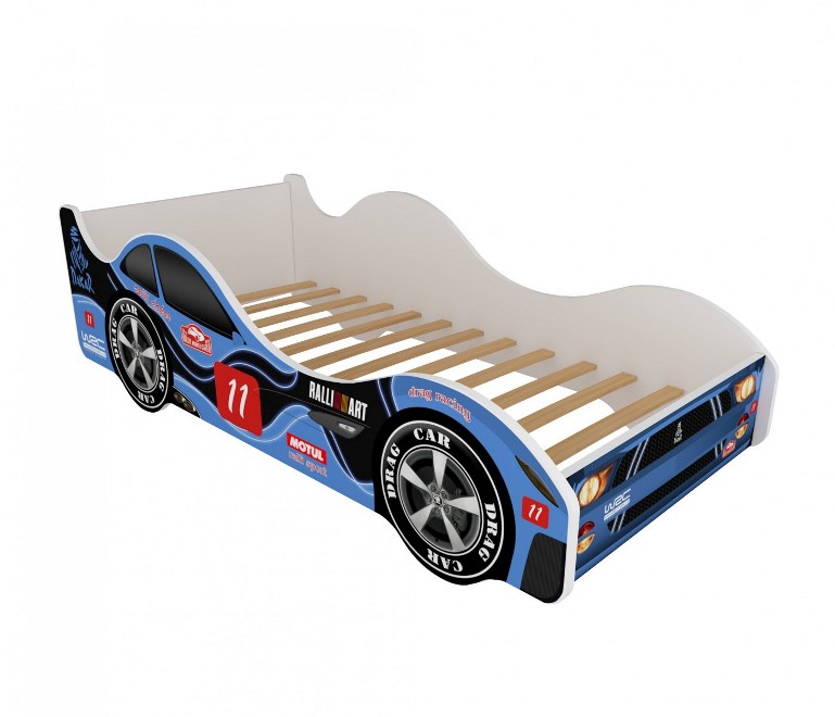 Кровать-машинка Турбо Синяя со встроенным матрасом и подъемным механизмом