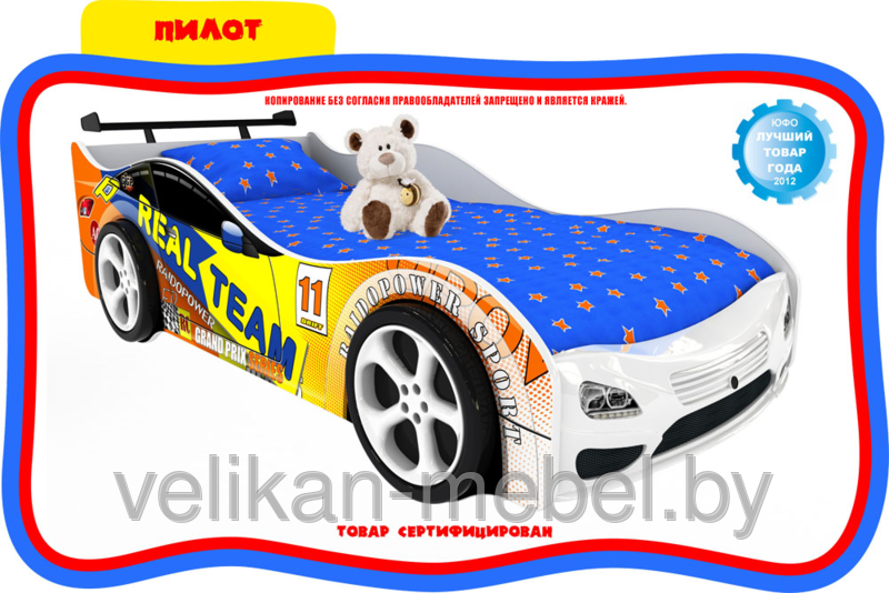 Кровать-машинка Турбо Белая со встроенным матрасом и подъемным механизмом