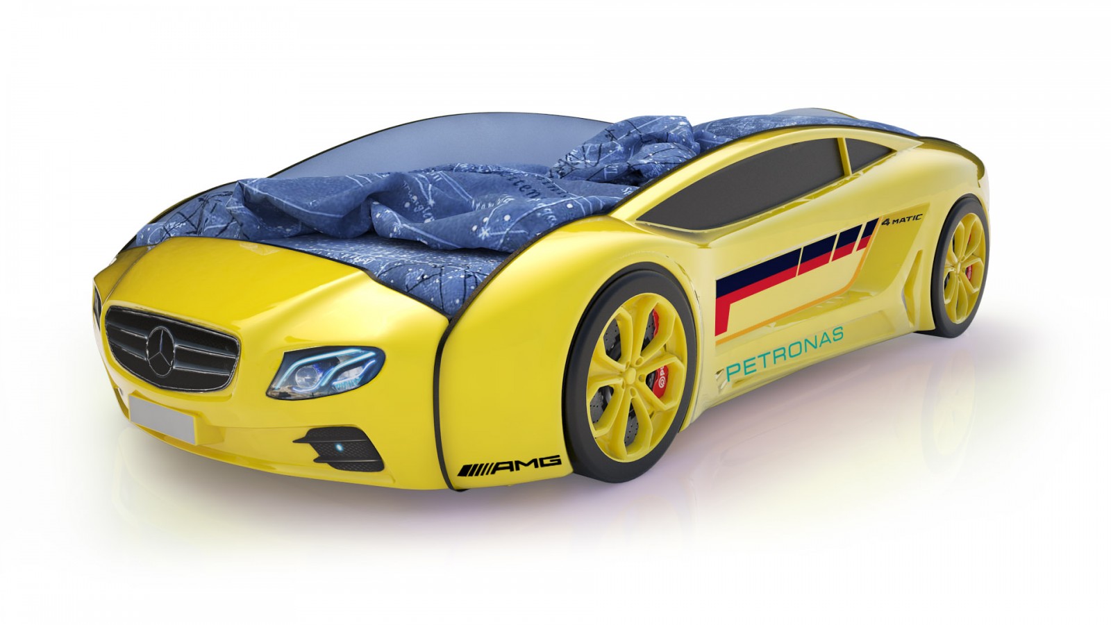 Колеса входят в стоимость. Матрас и светодиодная подсветка заказываются отдельно. Сборка кровати-машины занимает в среднем 10-15 минут. Подробная инструкция и необходимые инструменты прилагаются в комплекте.