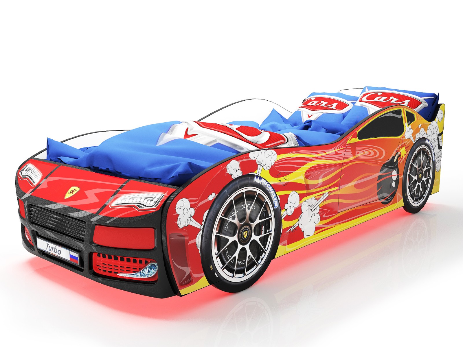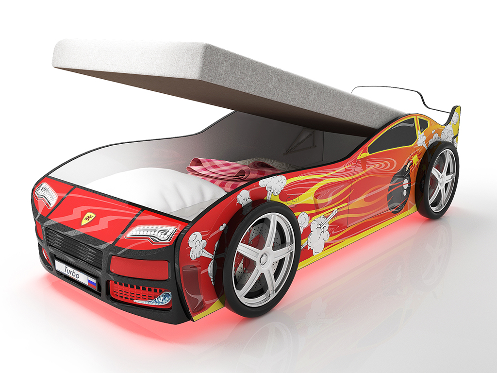 Кровать-машинка Турбо Красная 2 со встроенным матрасом и подъемным механизмом
