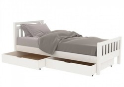 Детская односпальная кровать с бортиком и ящиками «Луна» (белая)