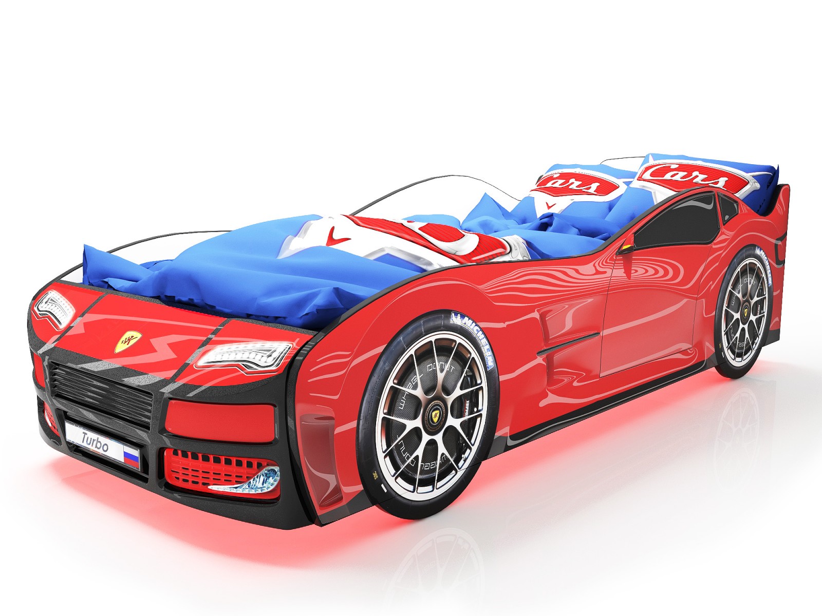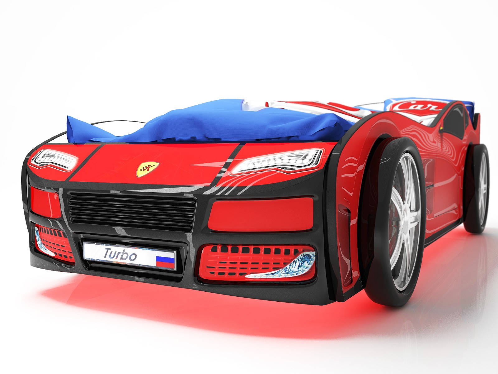 Кровать-машинка Турбо Красная 2 со встроенным матрасом и подъемным механизмом