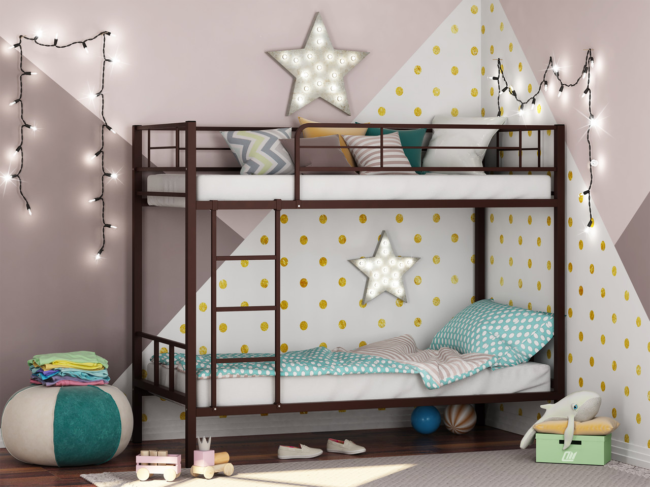 Металлическая двухъярусная кровать Севилья 2 - нагрузка до 180 кг (на одно спальное место), что делает ее подходящей как для детей, так и для взрослых. В отличие от кроватей из ЛДСП выглядит менее громоздкой.