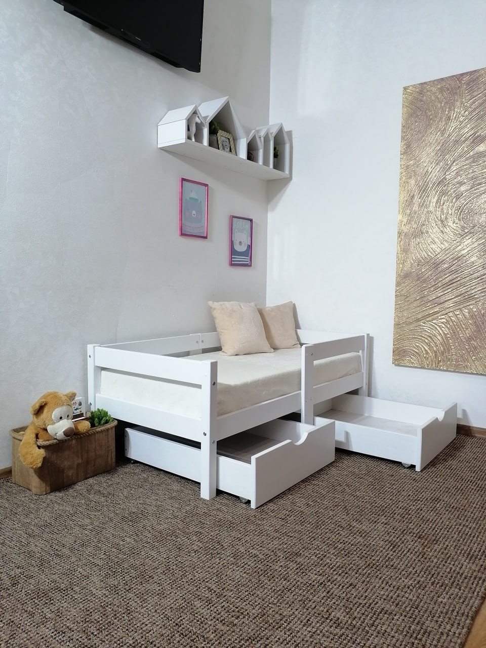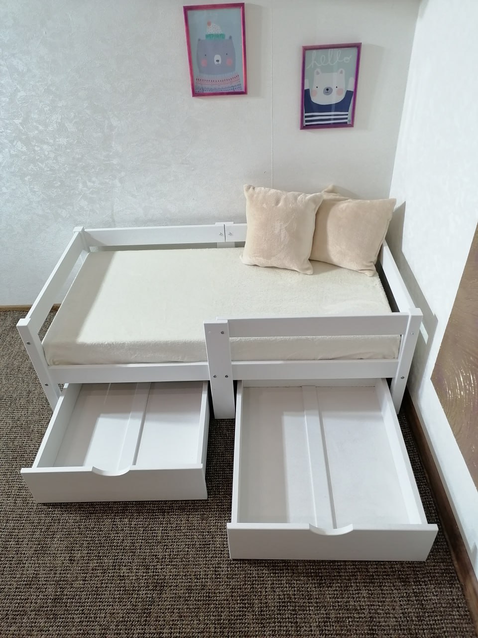В комплекте: выдвижной ящик 2 шт., бортик. Спальное место: 80х180 см. Материал: МДФ.