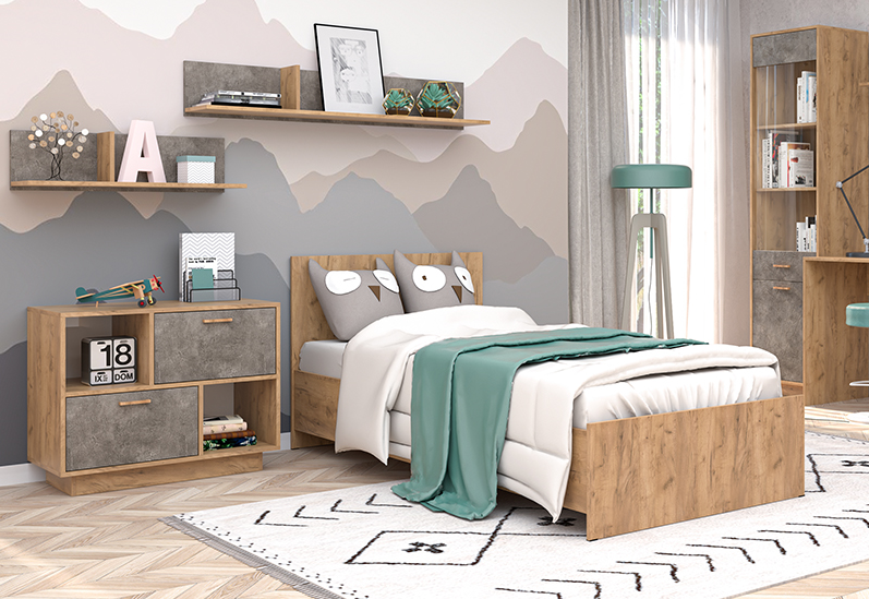 Цветовые решения: дуб крафт золотой, бетон лайн.