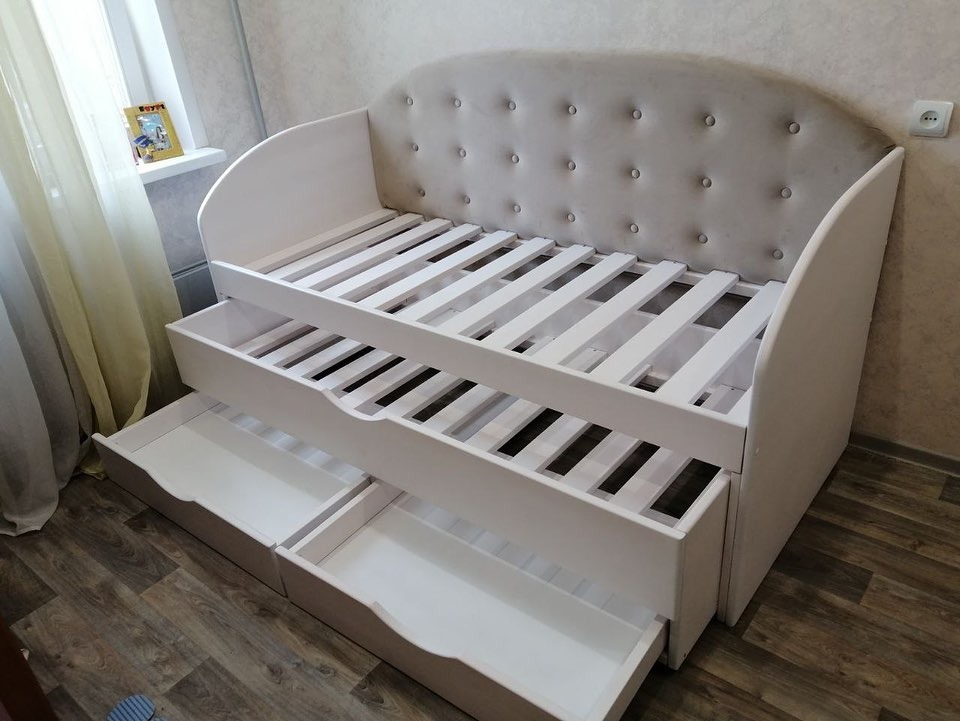 Спальные места: 80х180, 80х200 см. Выдвижные ящики в комплекте. Материал: ЛДСП.