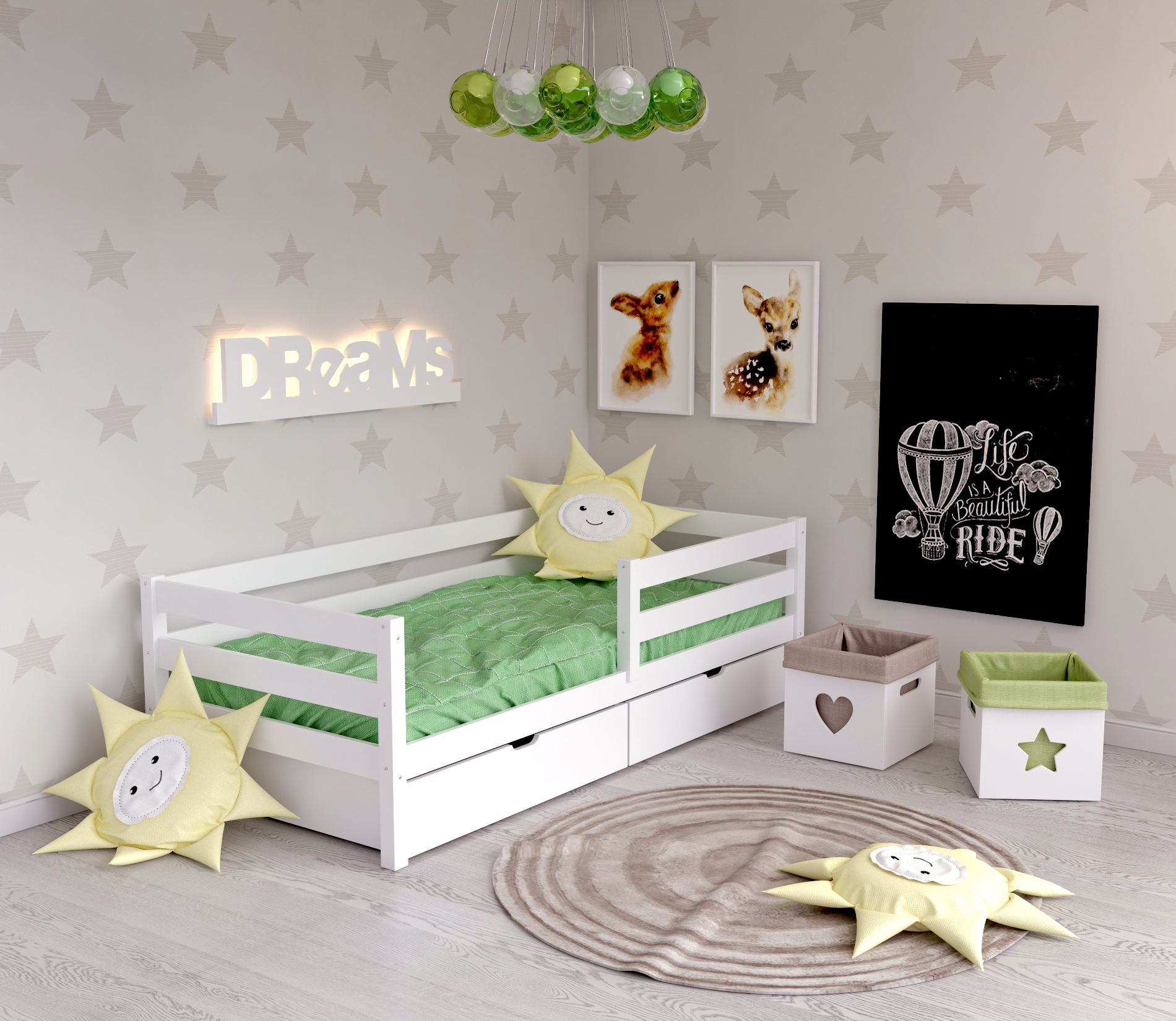 - БЕЗОПАСНАЯ МОДЕЛЬ : Защитный бортик в комплекте надежно защитит вашего малыша во сне, также можно дозаказать дополнительный бортик накладку. Кровать доступна в трех размерах, чтобы вы могли подобрать идеальный вариант для своей детской.