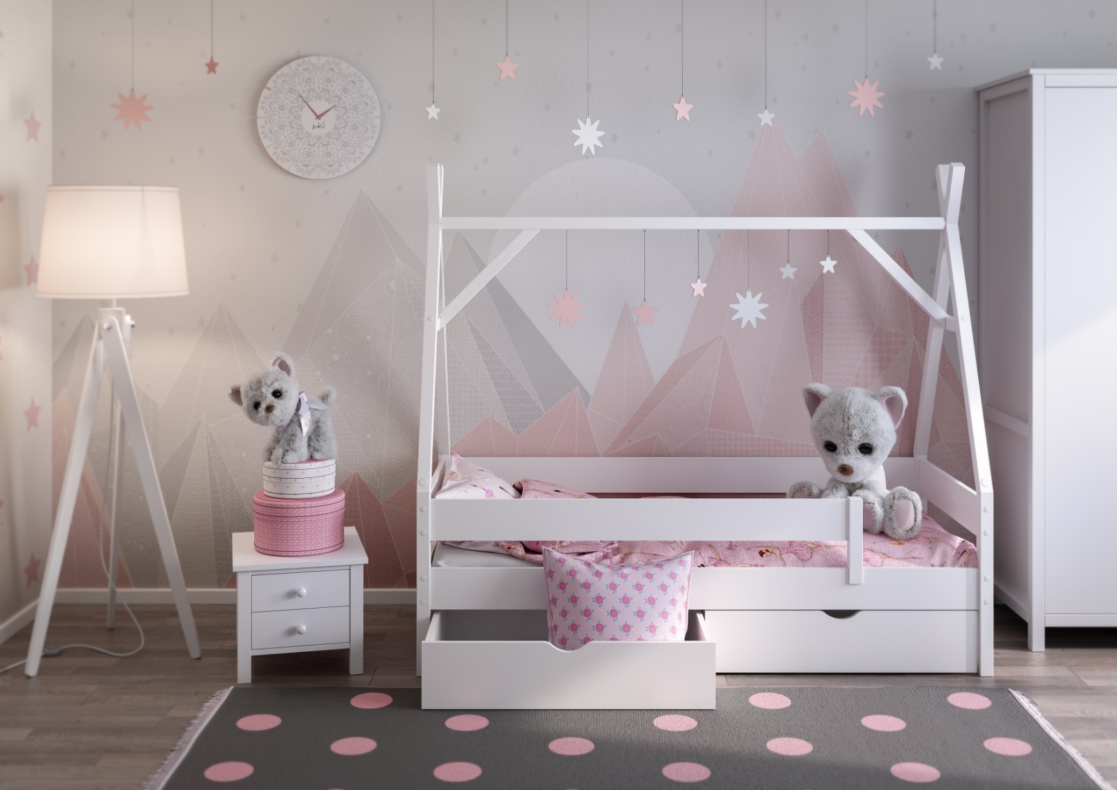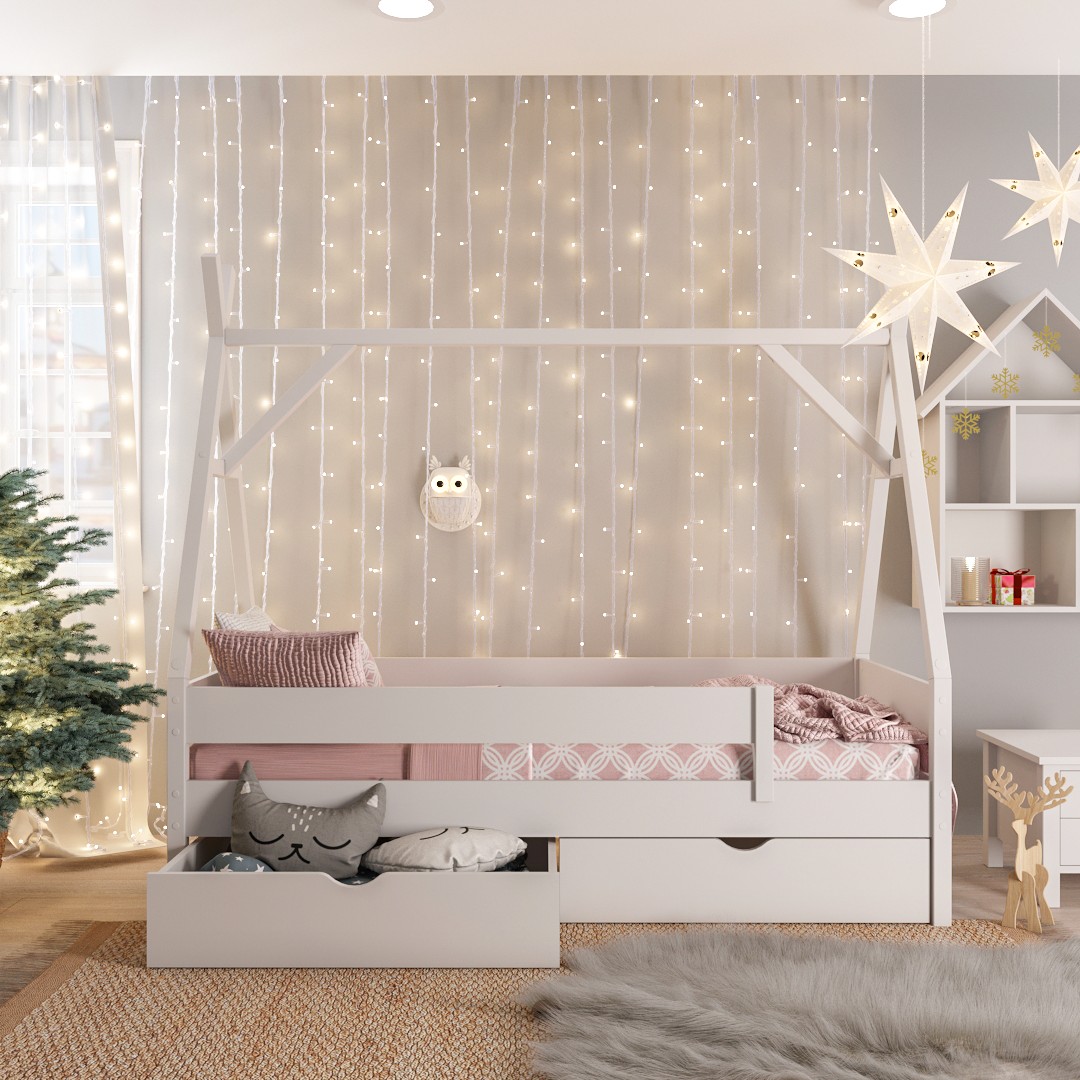 Кровать-домик «Альф со съемной крышей» с ящиками (антик+белый)