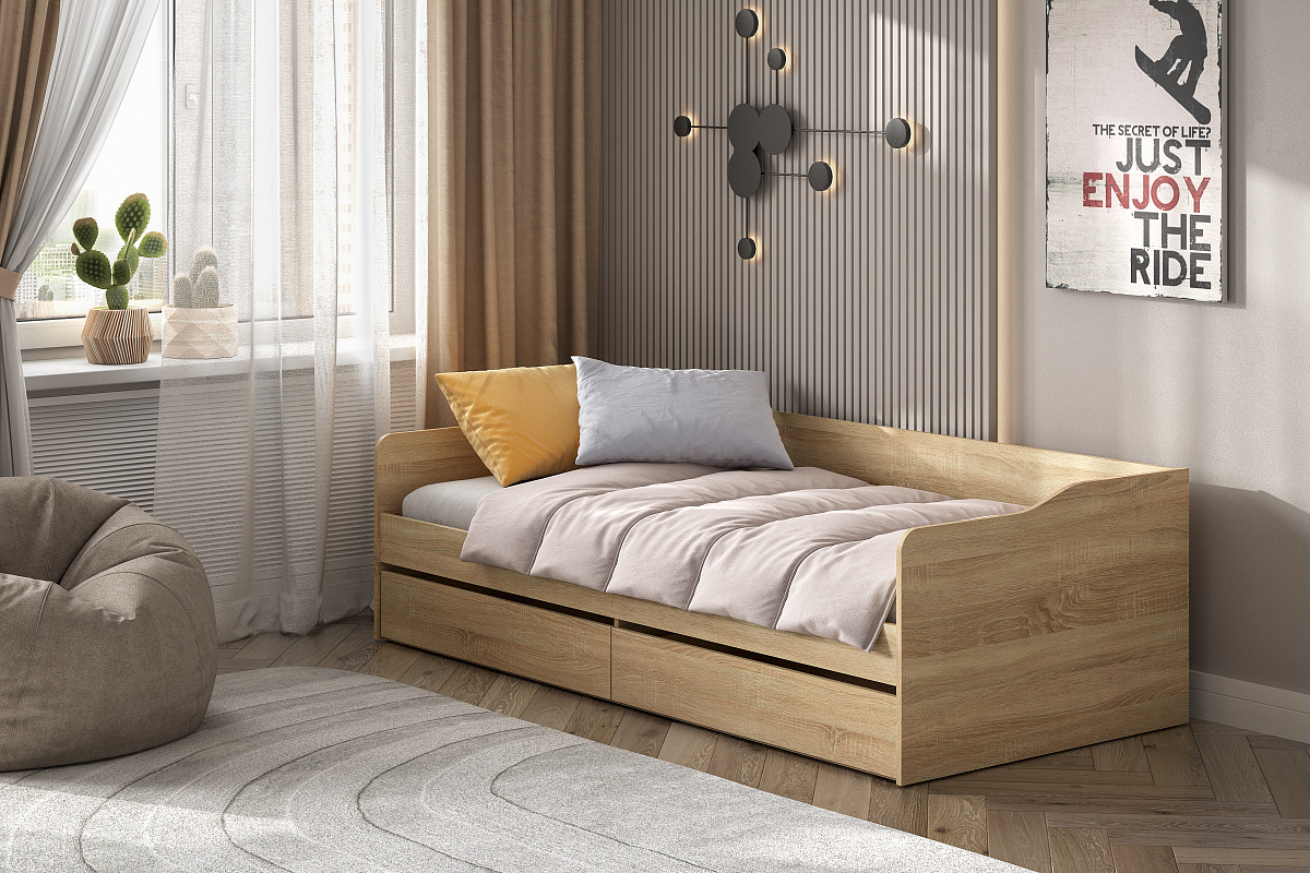 код 153064Спальное место: 90x200 см. 2 ящика для хранения. Материал: ЛДСП.
