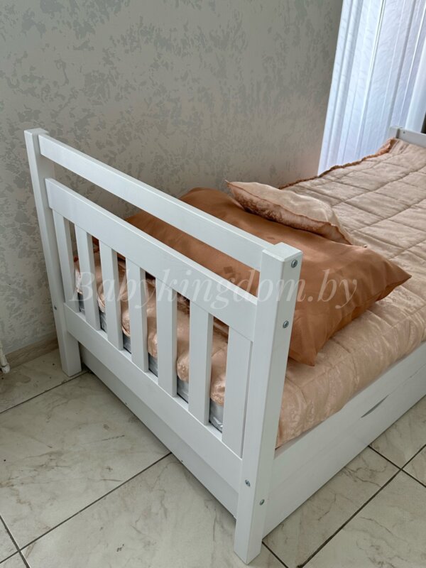 Односпальная кровать из березовой фанеры со съемным бортиком «Ecodrev МФ-2» (белая)
