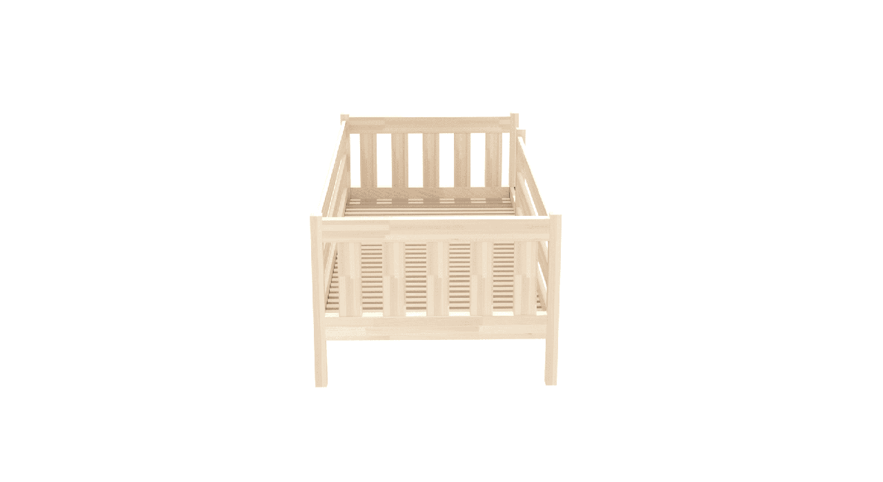 Кровать выполнена из массива сосны и окрашена абсолютно безопасной краской на водной основе, так что вы можете быть спокойны за безопасность вашего ребенка.