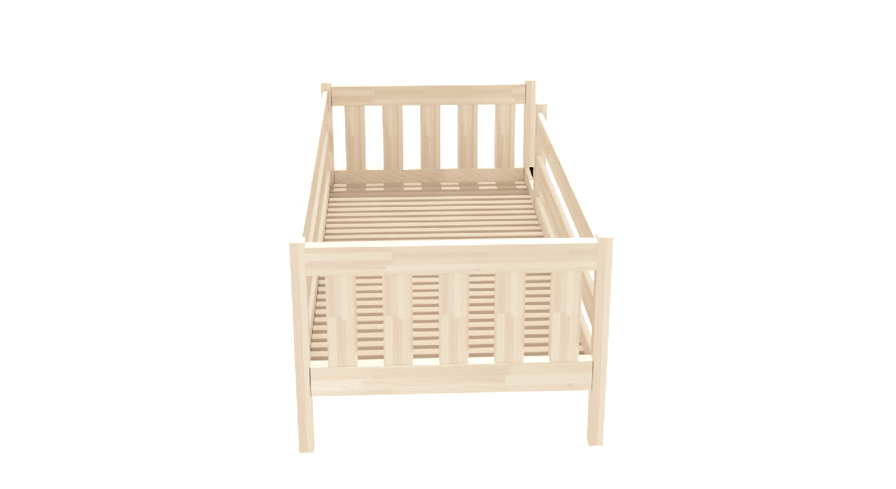 Кровать выполнена из массива сосны и окрашена абсолютно безопасной краской на водной основе, так что вы можете быть спокойны за безопасность вашего ребенка.