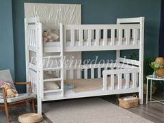 Двухъярусная кровать из массива березы «Вуди-3» с ящиками (белый)