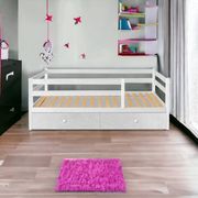 Кровать комплектуется выдвижными ящиками для белья. Декоративный бортик может быть снят.