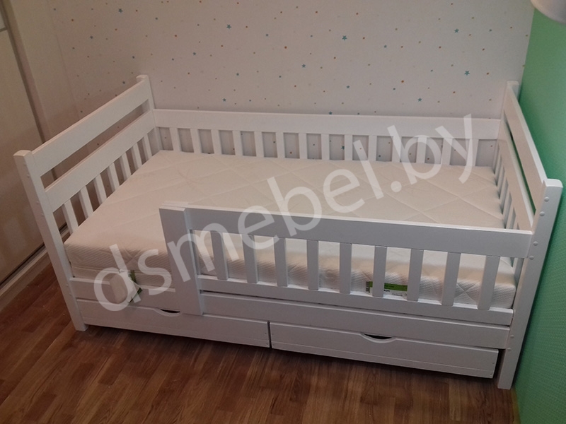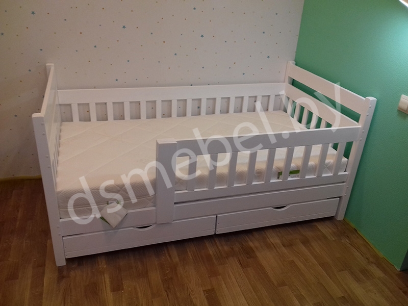 Кровать с бортиком и ящиками «Мода» (белая) + матрас Kinder 4