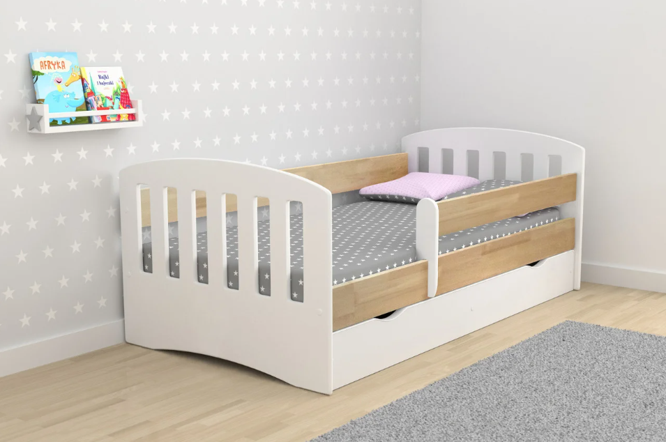 Приятная светлая расцветка кровати прекрасно впишется в интерьер, а благодаря бортику ребенок будет в безопасности во время сна.