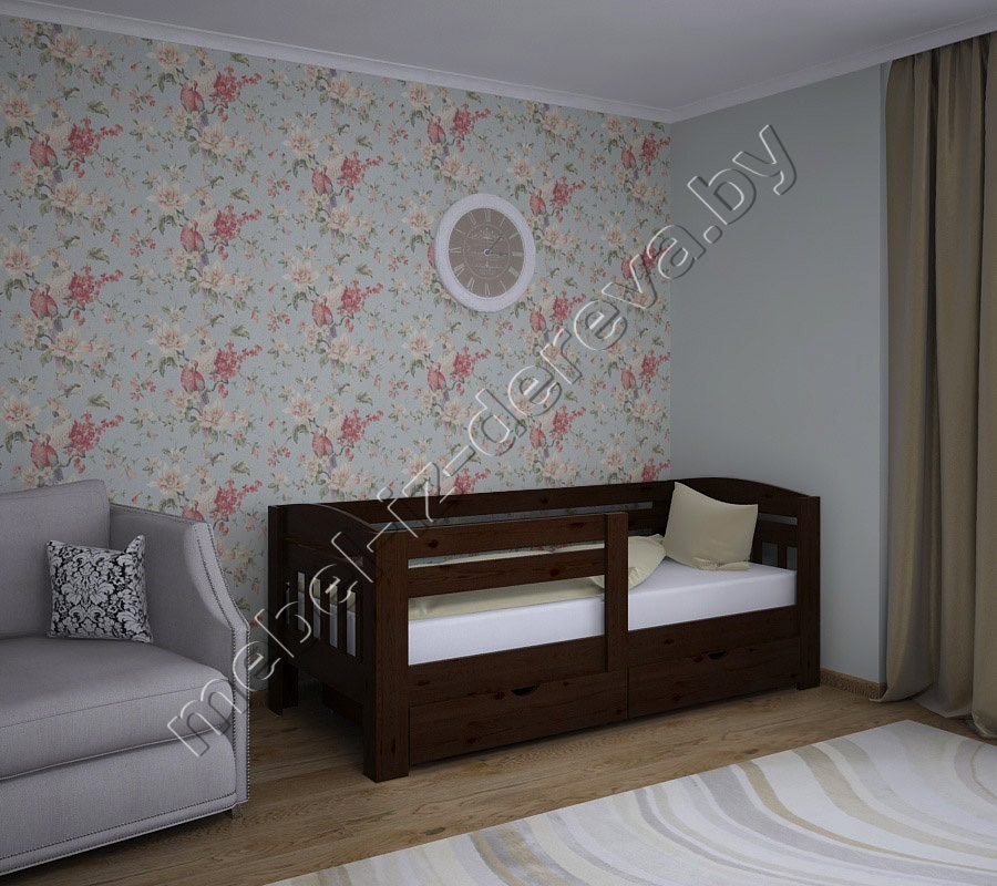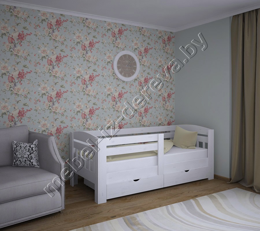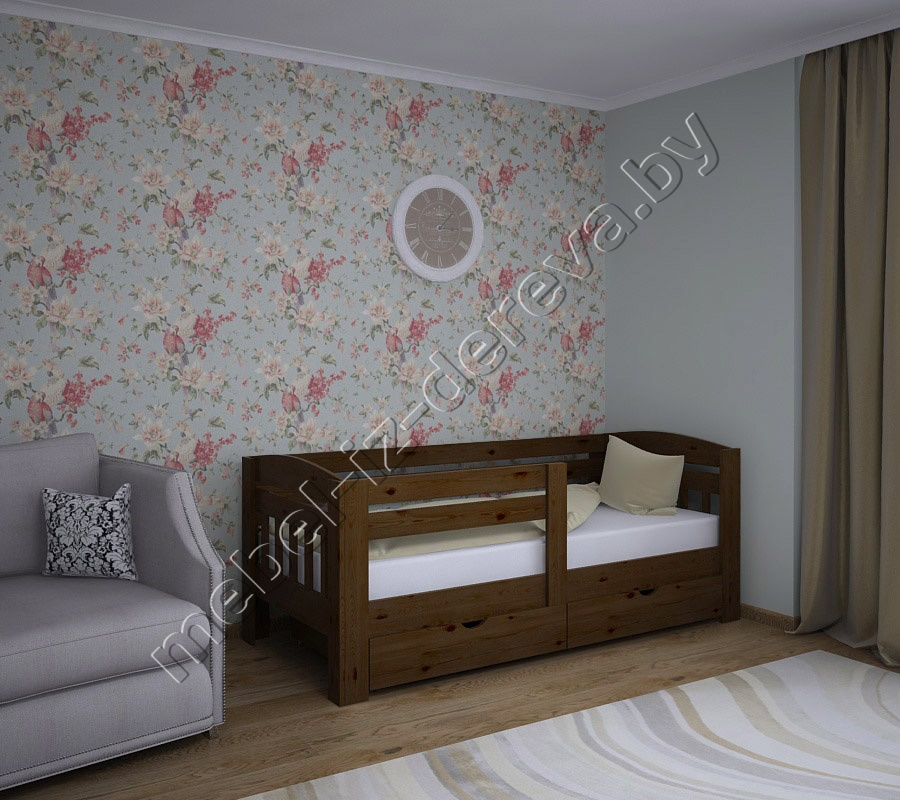 Кровать предназначена для комфортного сна вашего ребенка. Модель выполнена из экологичного массива сосны, гарантирующего кровати долгий срок службы. Ребенку в такой кровати будет не только уютно, но и безопасно за счет защитного переднего бортика, длина которого определяется индивидуально.