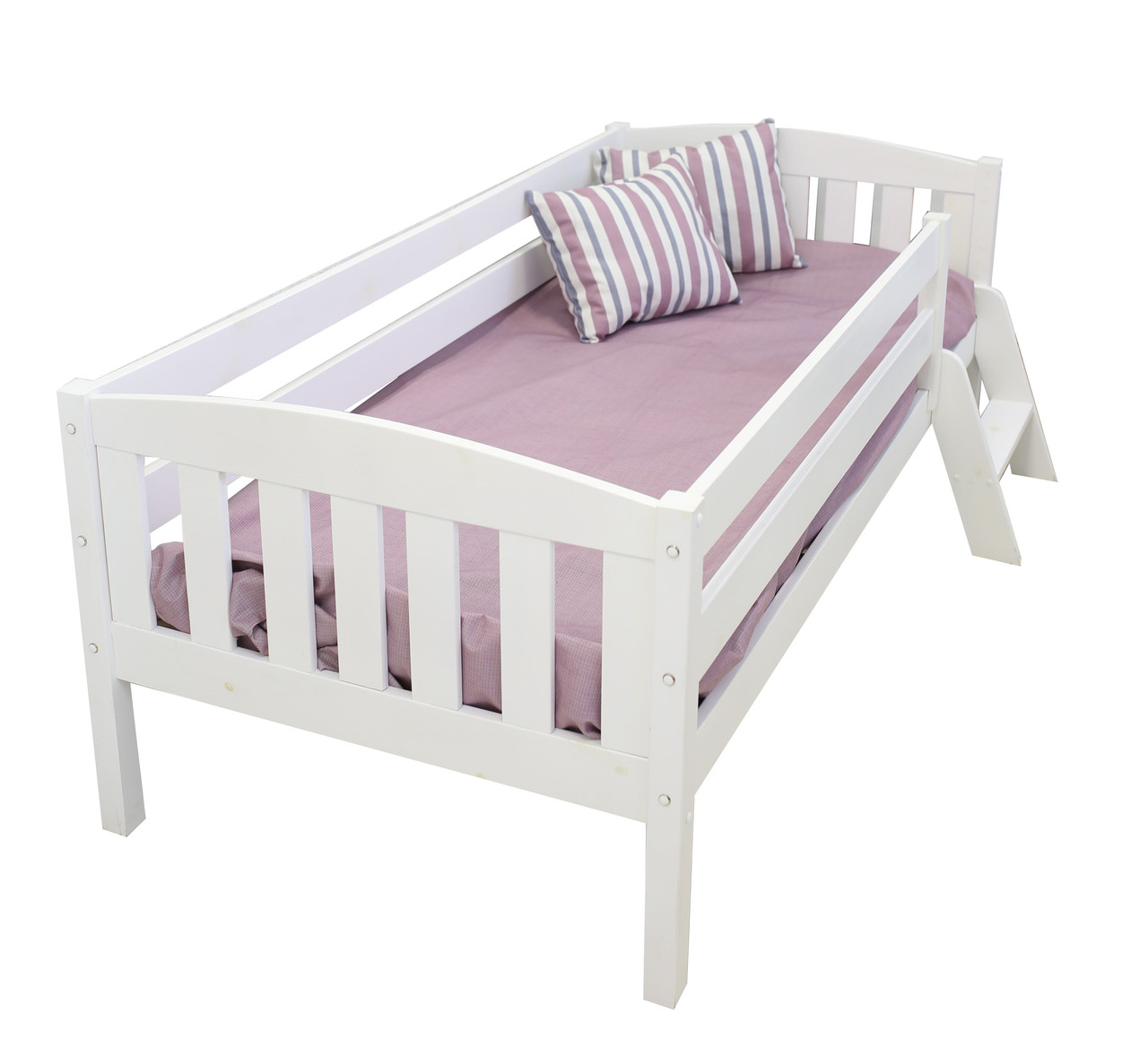 Кровать выполнена из массива сосны и окрашена абсолютно безопасной краской на водной основе, так что вы можете быть спокойны за безопасность вашего ребенка.