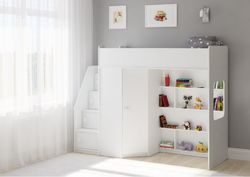 Детская кровать-чердак «Мийа» дуб сонома светлый / белый (шагрень)
