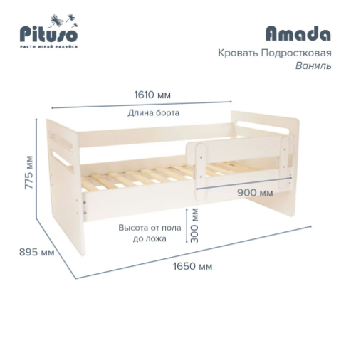 Кровать подростковая c бортиком «Pituso Amada New» Ваниль