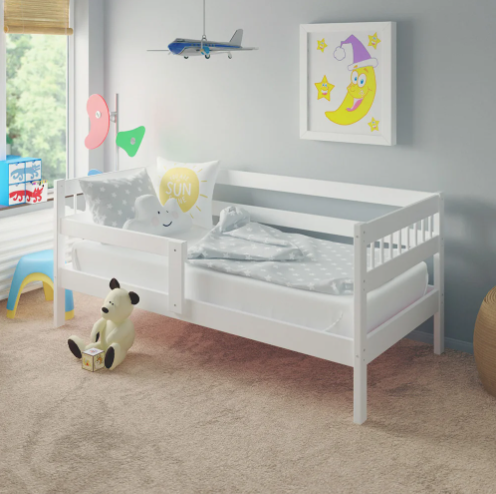 Для безопасности ребенка комплектуется одинарным бортиком, который можно установить как слева, так и справа или вообще без него.