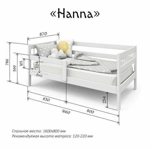 Кроватка Hanna - хороший вариант для детской комнаты. Предусмотрена для детей от 3-х до 7-ми лет.