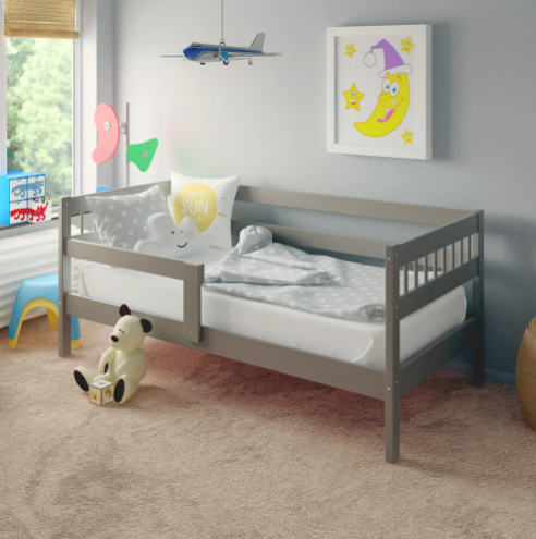 Для безопасности ребенка комплектуется одинарным бортиком, который можно установить как слева, так и справа или вообще без него.