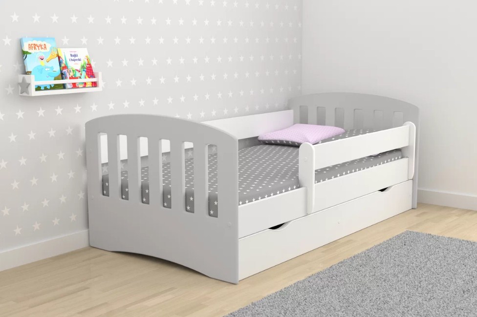 Белая кроватка в классическом стиле изготовлена из МДФ, без использования химически вредных веществ. Данная модель будет отличным решением для детей и подростков. Все углы кроватки отшлифованы, округлены и не имеют неровностей, так же установлены защитные бортики, чтобы предостеречь ребенка от травм. Кровать дополняет вместительный ящик для белья или игрушек.