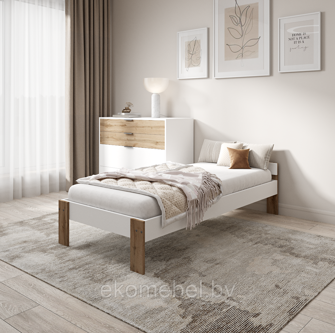 Спальное место: 90х200 см. Материал: массив сосны.