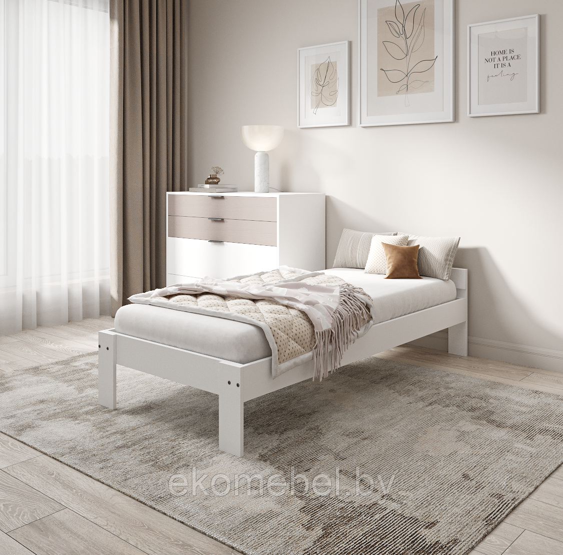Спальное место: 90х200 см. Материал: массив сосны.