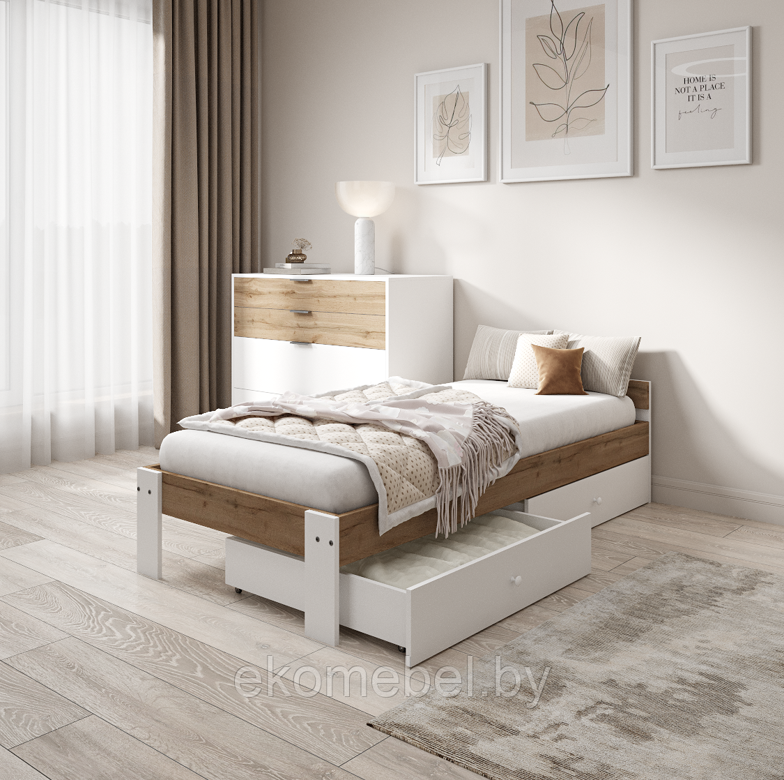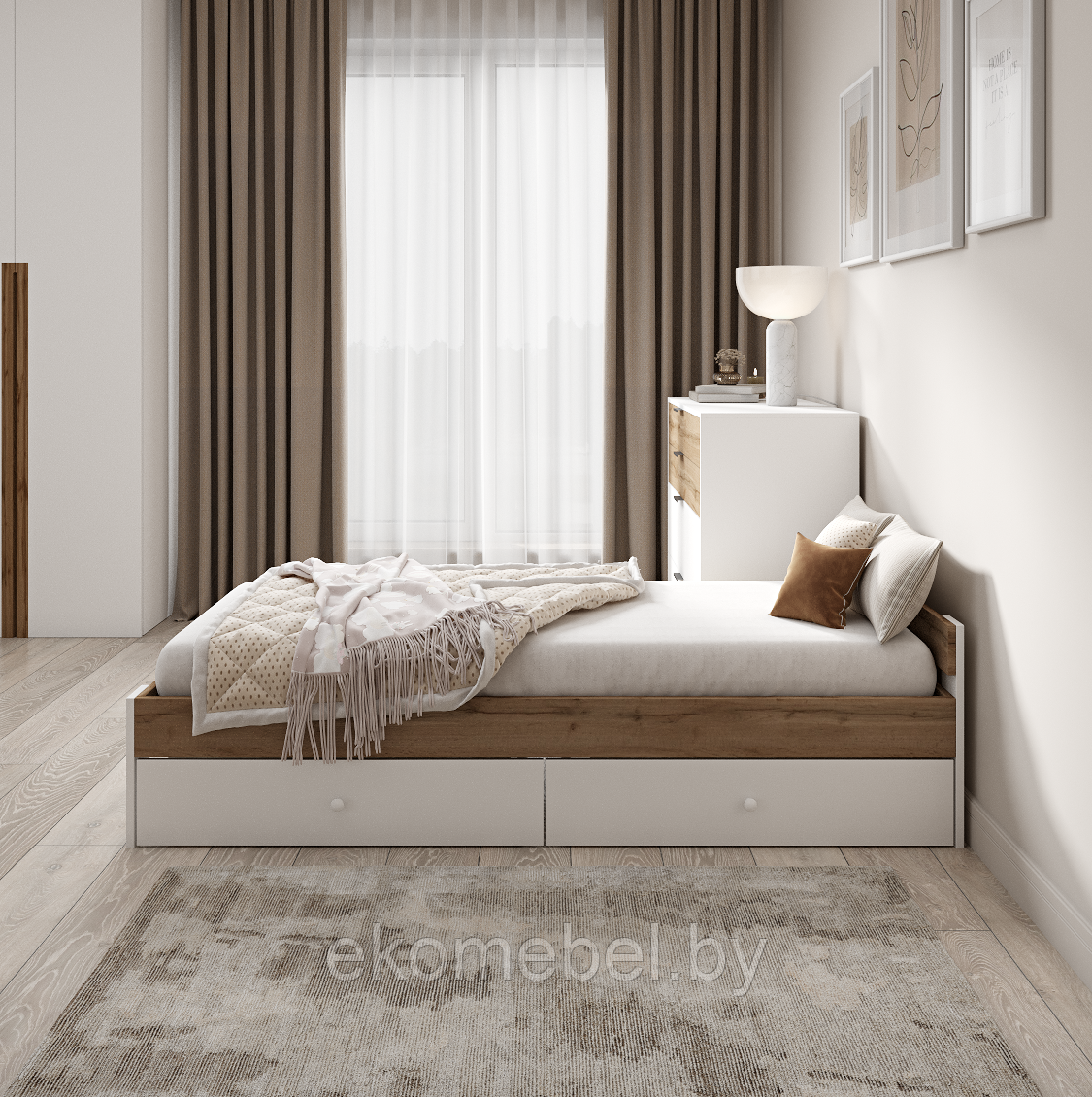 код 148802Спальные места: 80х160, 80х180, 80х200 см. Выдвижные ящики в комплекте. Материал: ЛДСП.