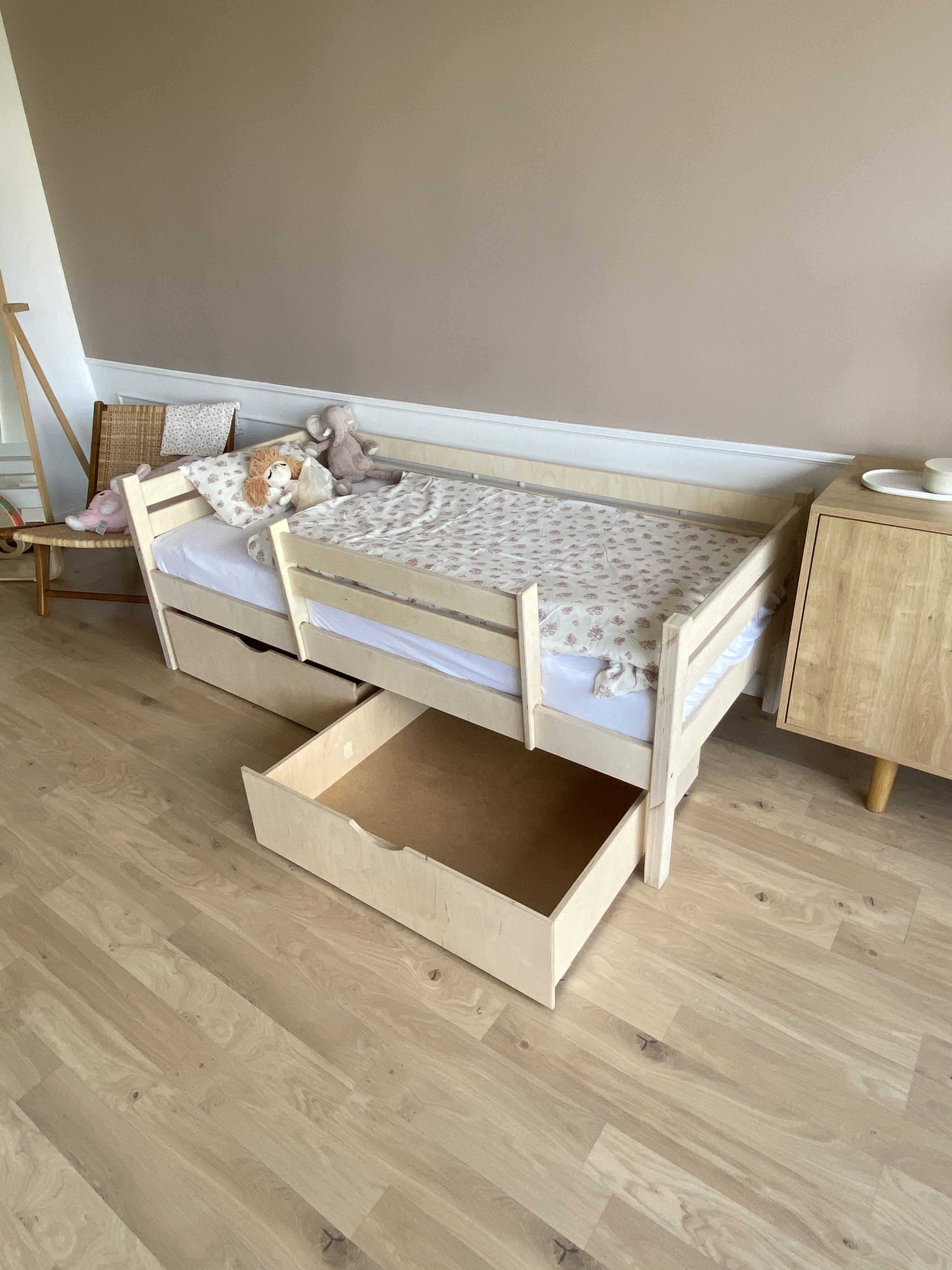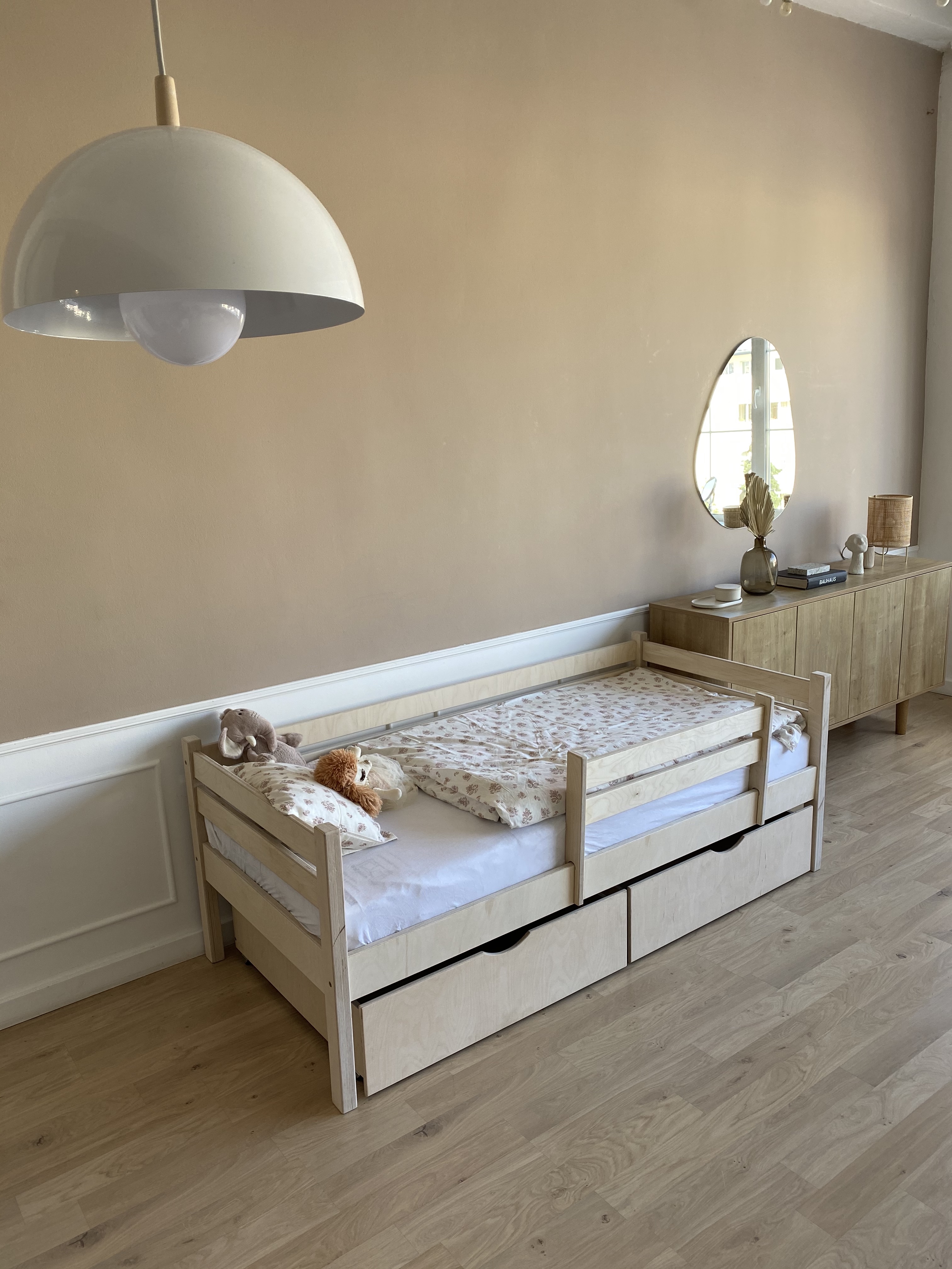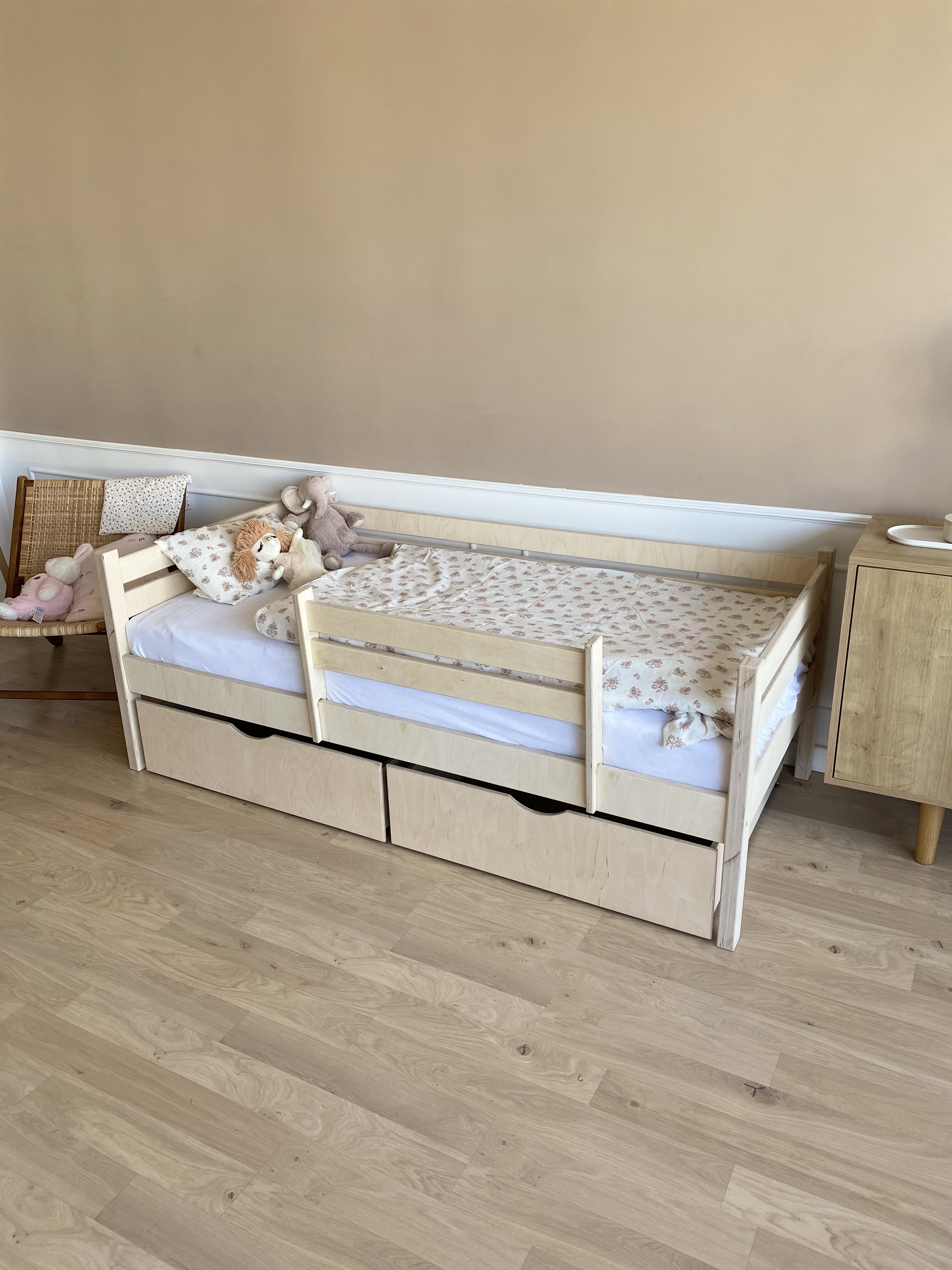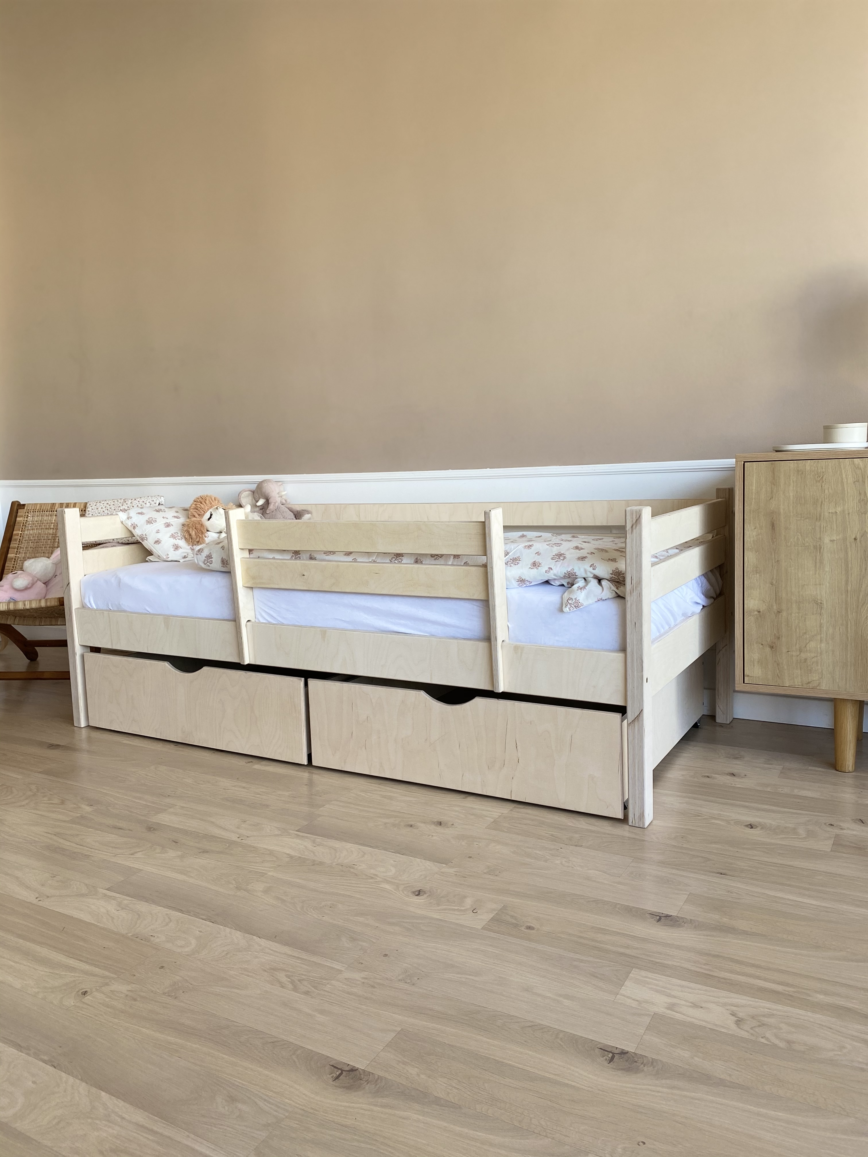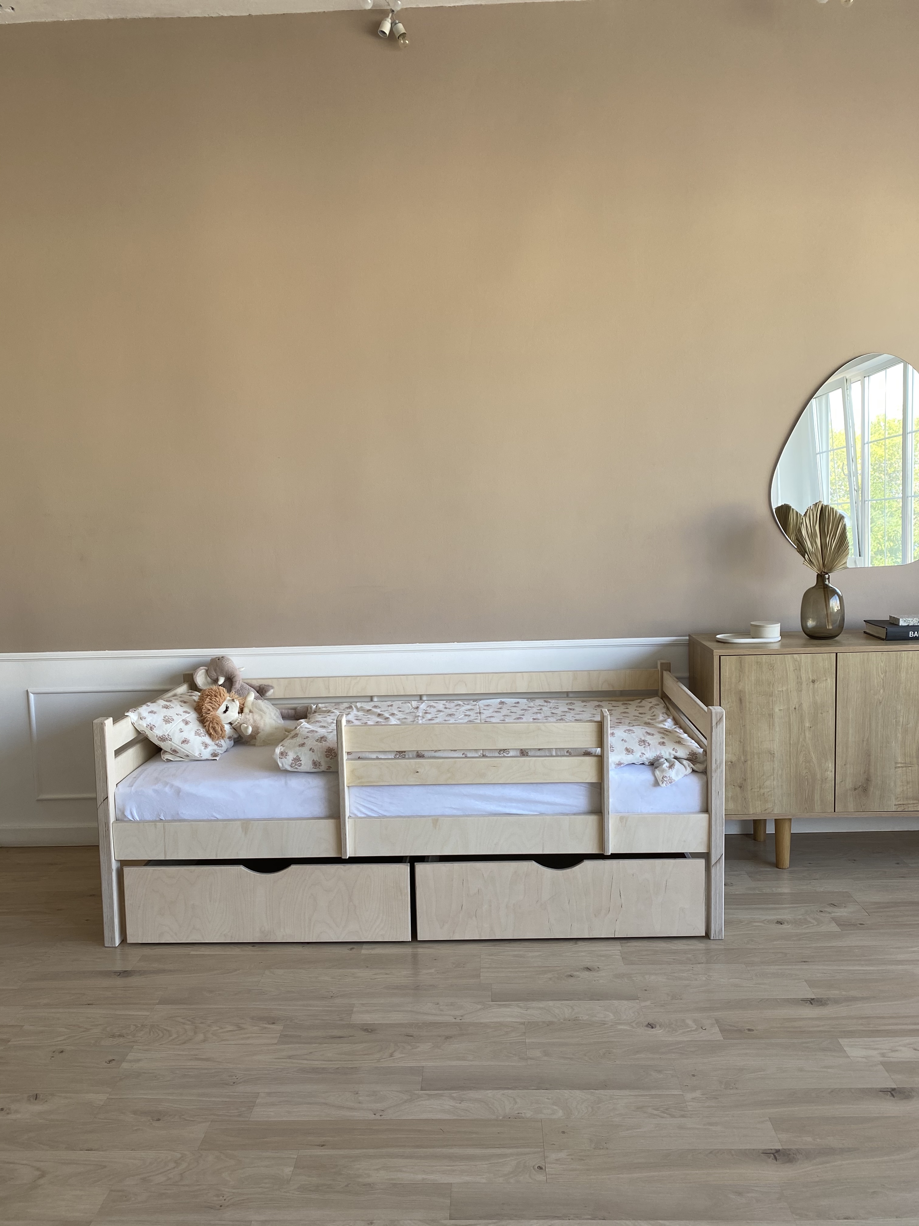 Кровать «ROSTIK» из березовой фанеры (лак, с ящиками, с бортом)