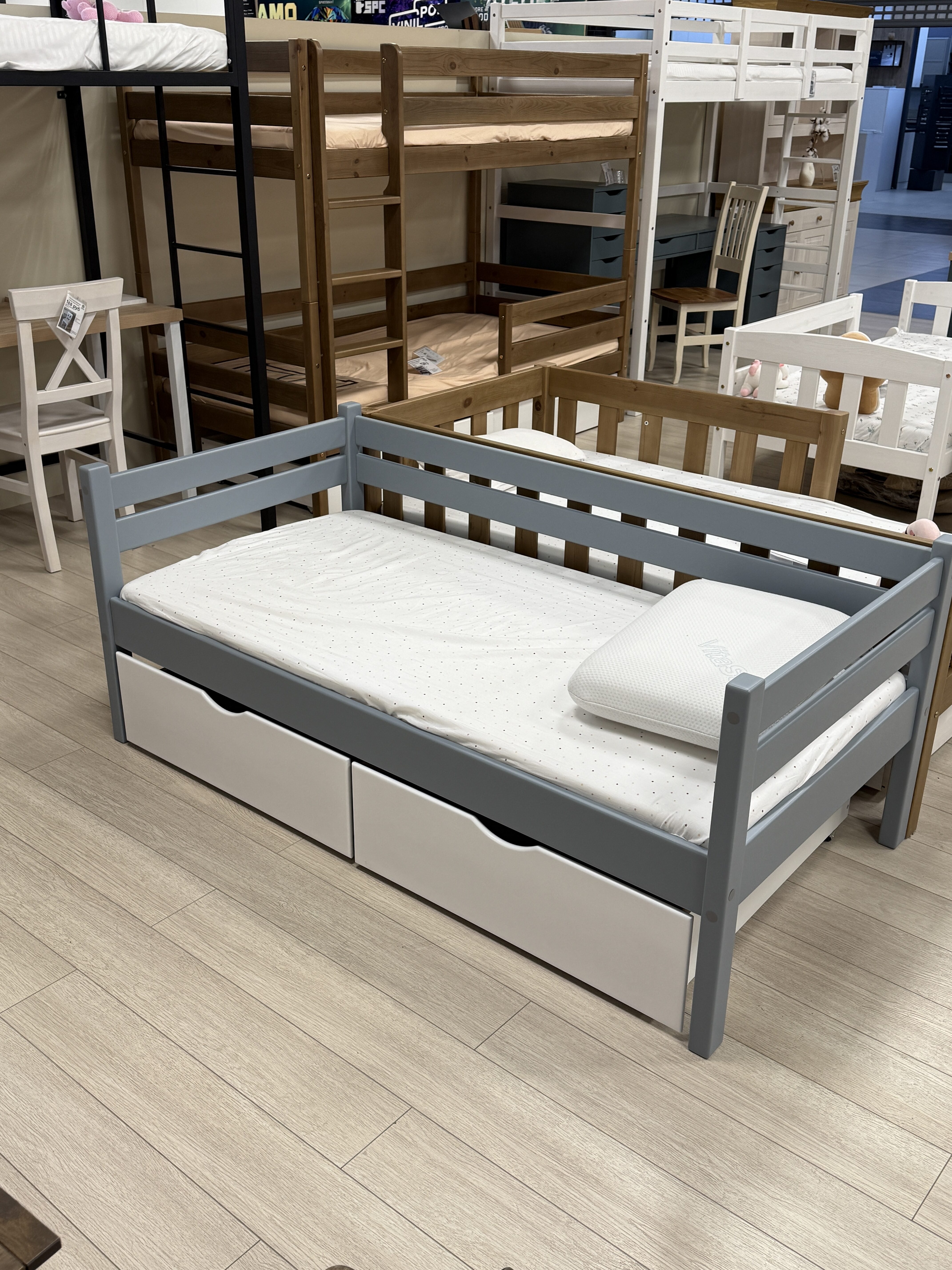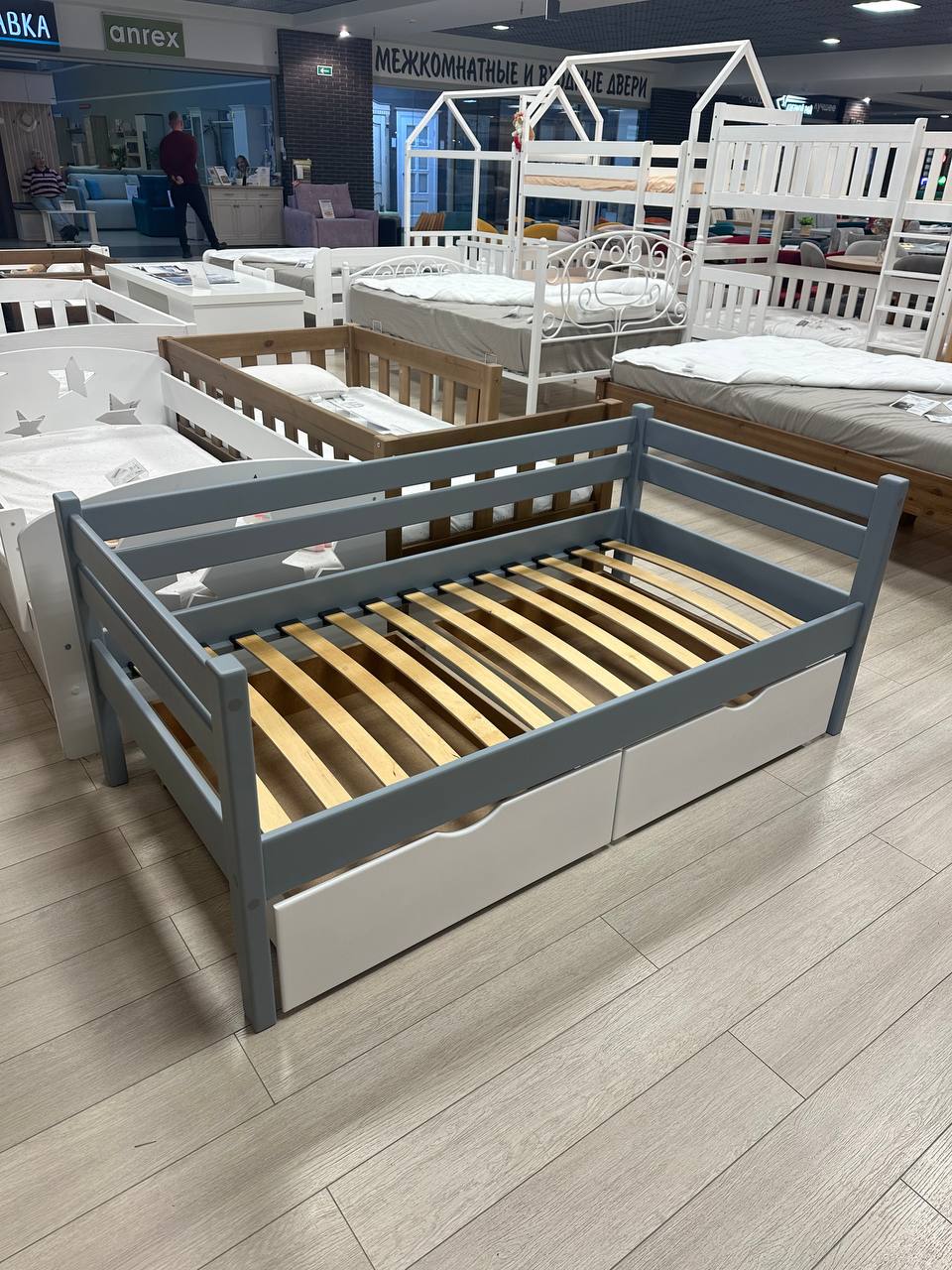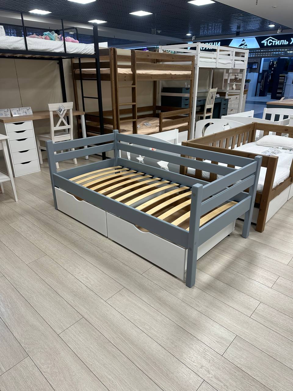 Кровать «ROSTIK» из березовой фанеры (серый, с ящиками, без борта)