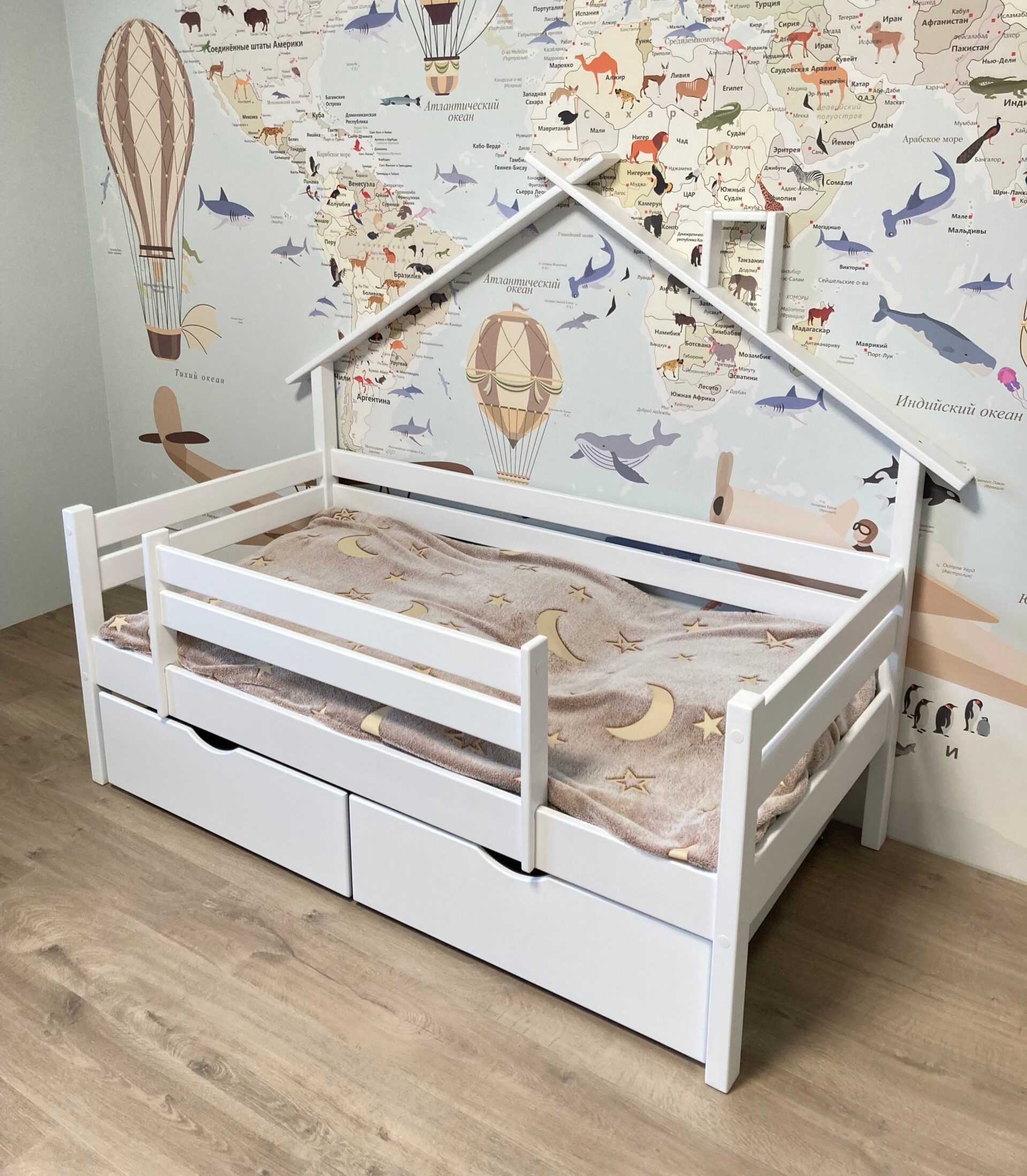 Кровать «Забава домик» 80x160 с ящиками, массив березы
