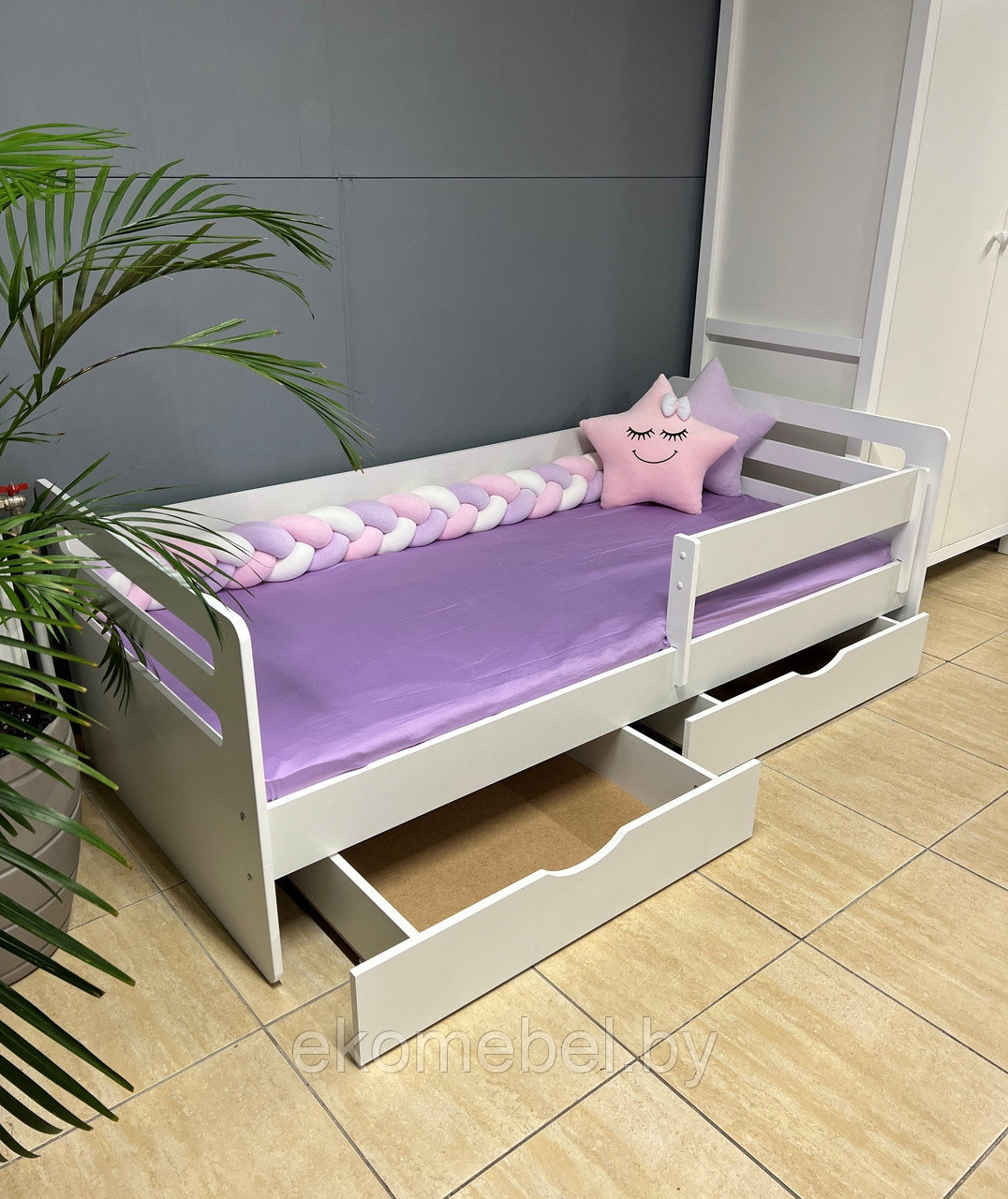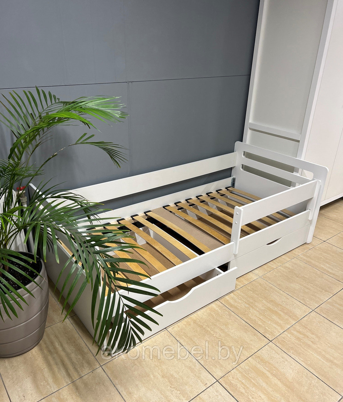Кровать "Мода" оснащена двумя бельевыми ящиками и съемным бортиком, который обезопасит вашего ребенка во время сна.