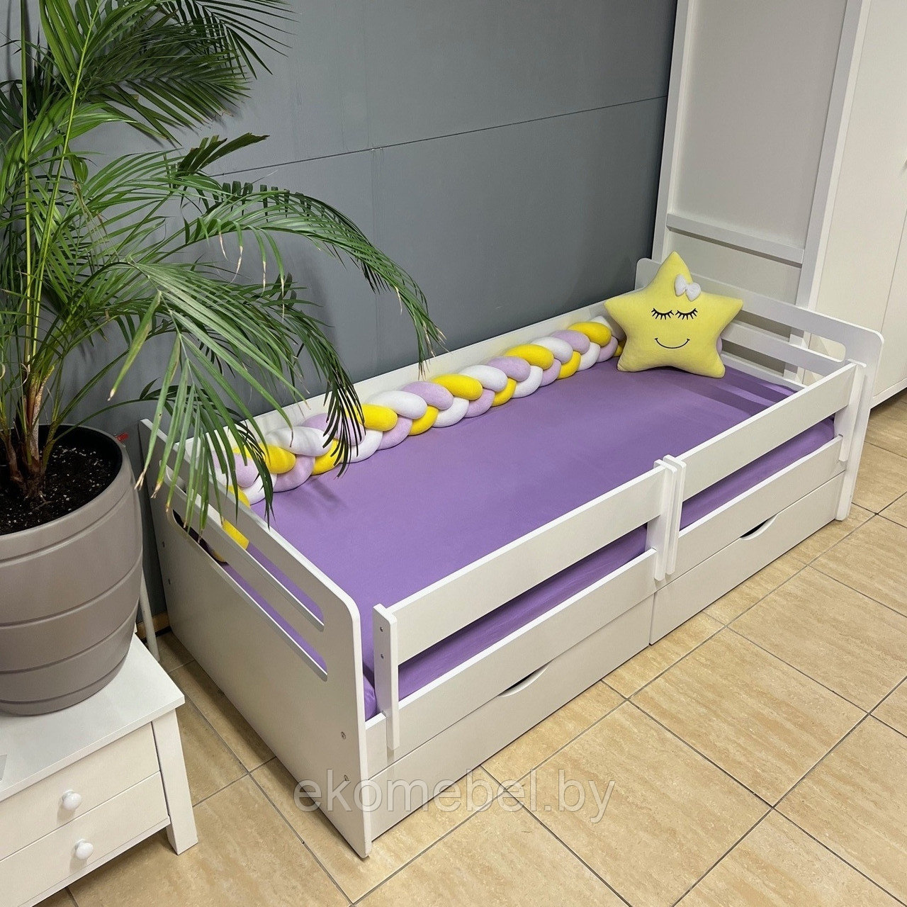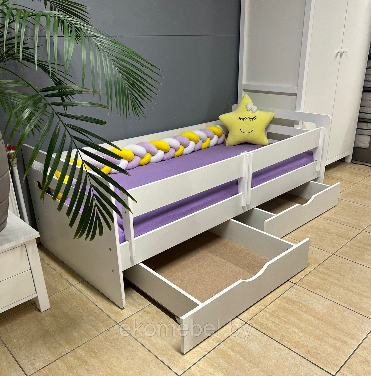 Кровать «Ecodrev» Классик со стационарный бортиком и ящиками (белая)