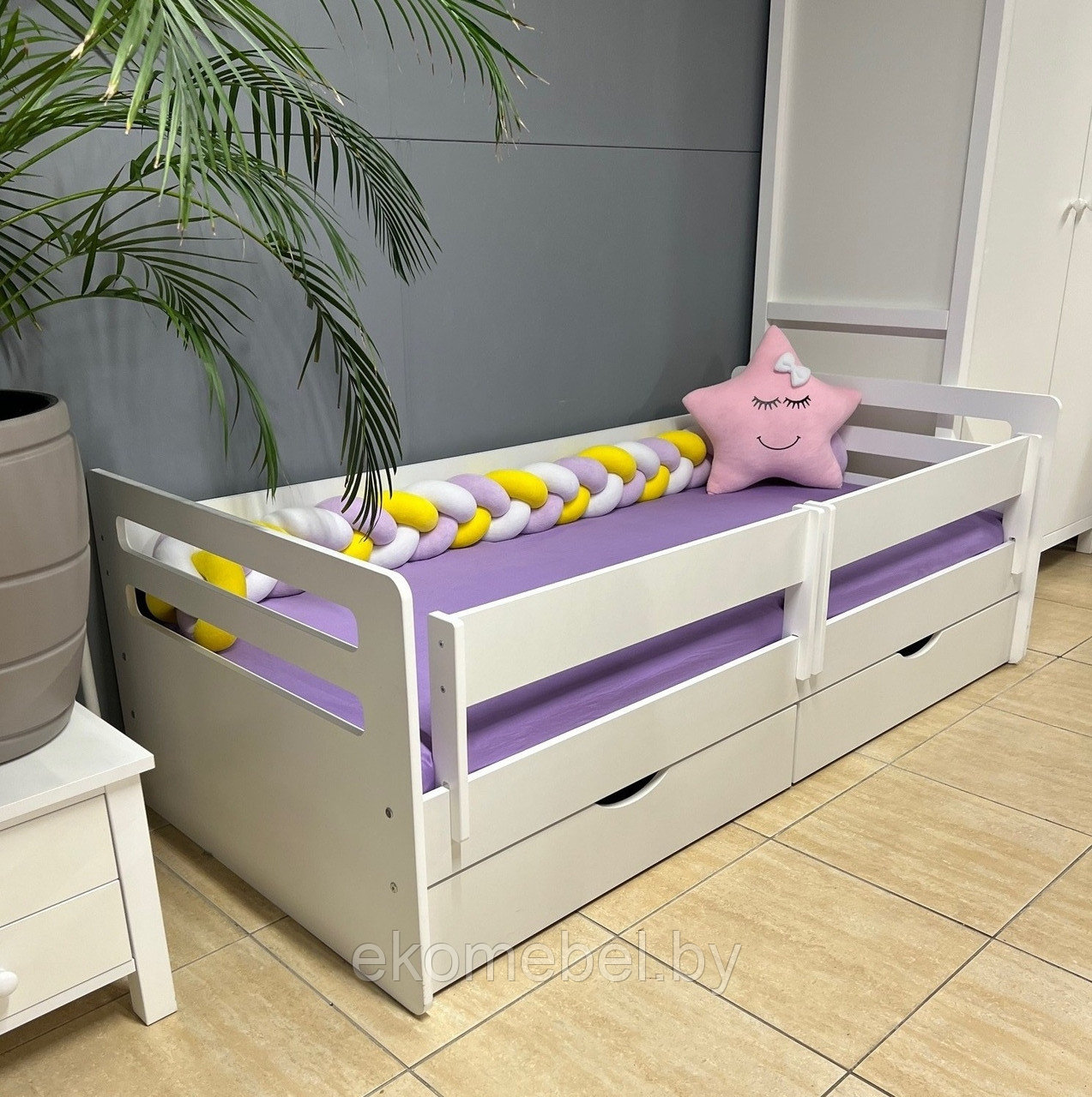 Кровать "Мода" оснащена двумя ящиками для хранения белья и двумя съемными бортиками, которые обезопасят вашего ребенка во время сна.
