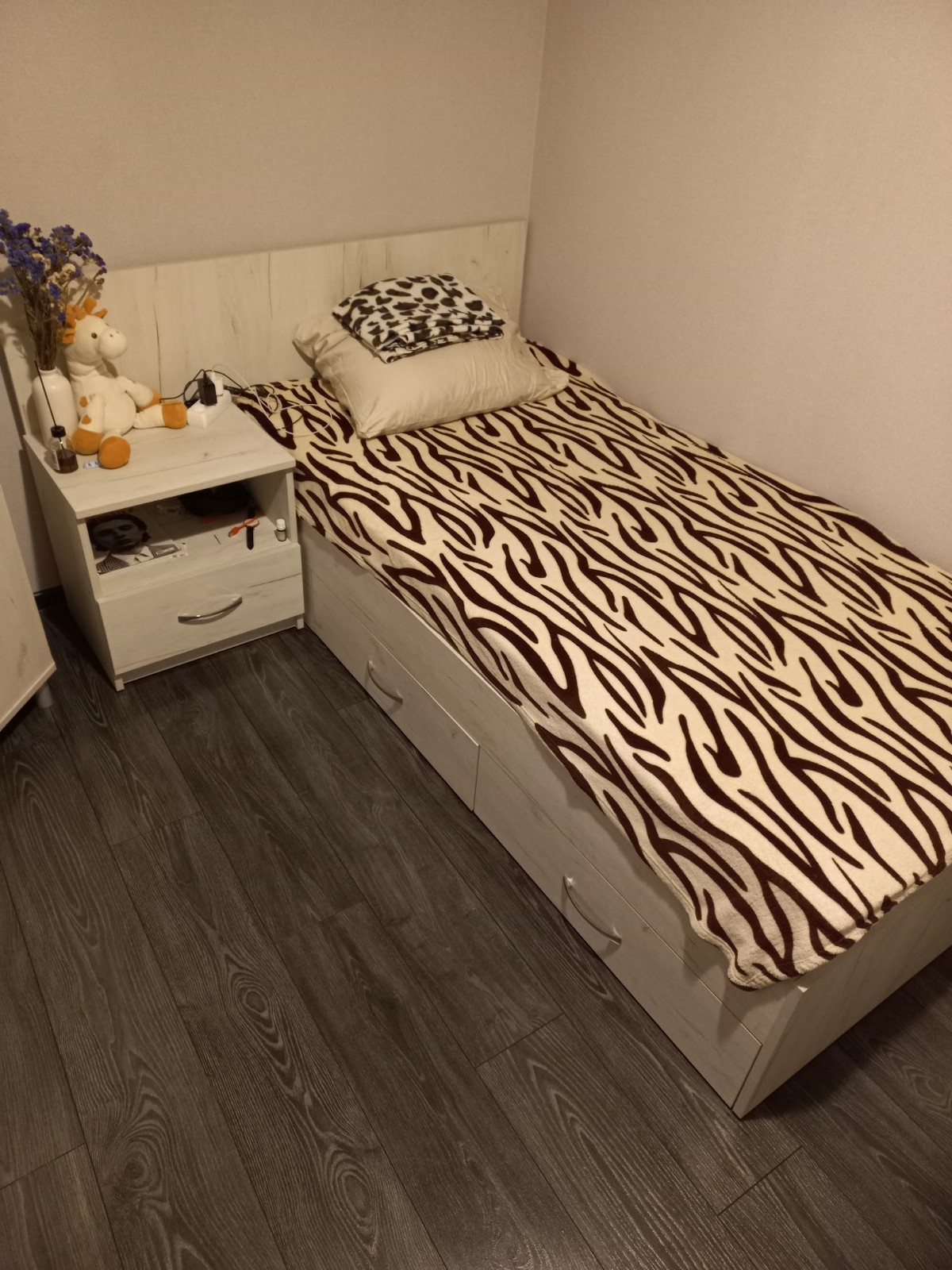 Спальное место: 90х200 см. Материал: МДФ покрытый плёнкой, ЛДСП.