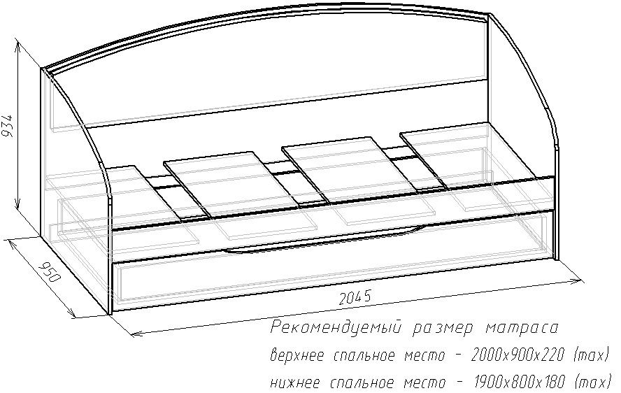 Габариты: 2045х950х935 мм.