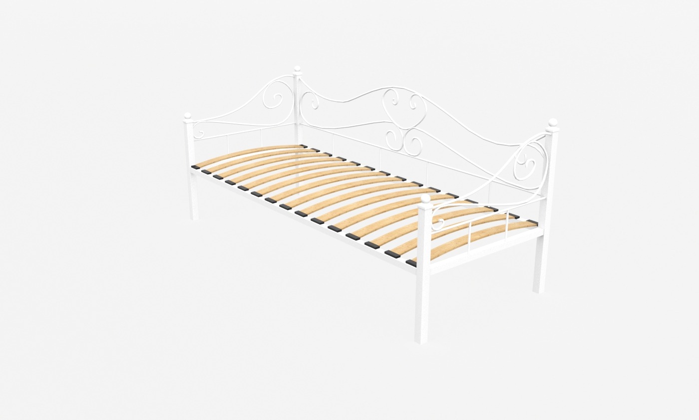 Кровать-диван из металла Валенсия – ажурная, легкая, узорчатая модель. Фигурная спинка защитит надолго от загрязнений Ваше декоративное покрытие на стене. Отличный вариант для детской спальни или гостиной.