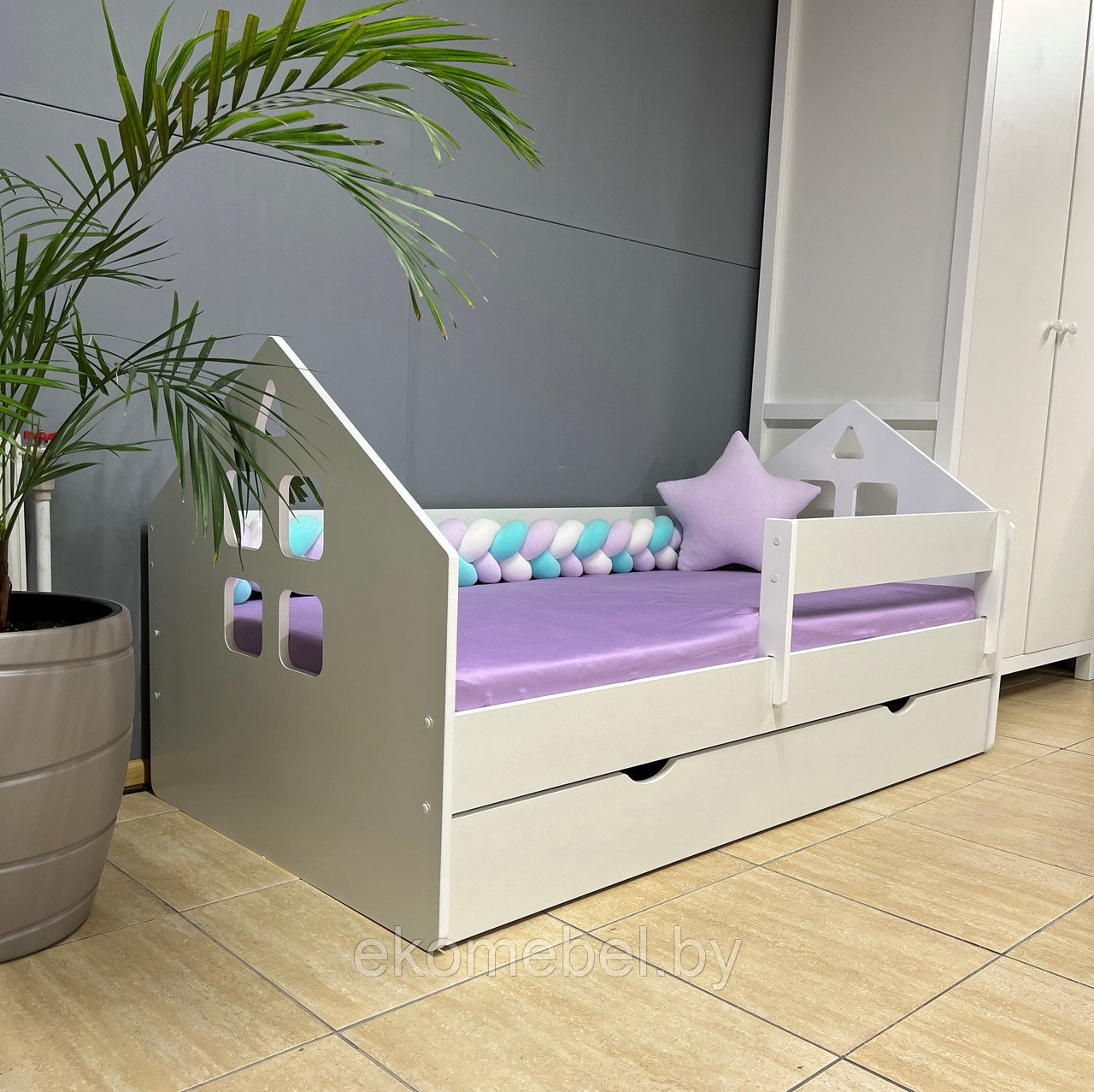 Кровать "Теремок" оснащена ящиком для хранения белья и съемным бортиком, который обезопасит вашего ребенка во время сна.