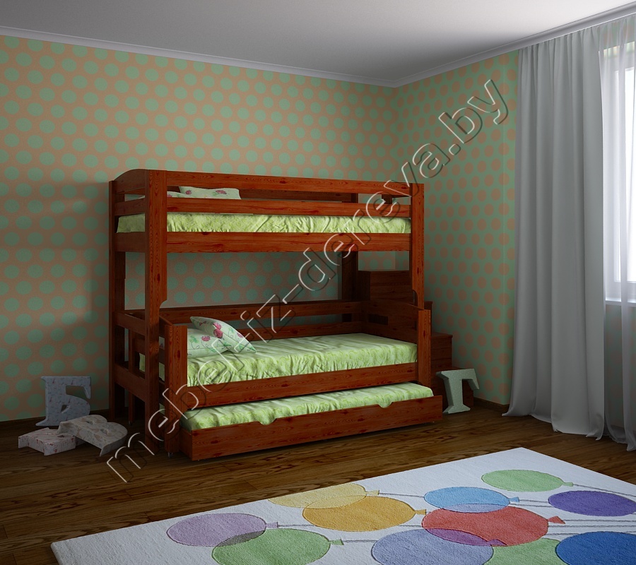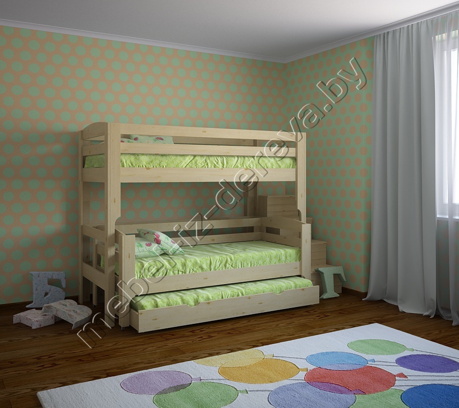 Спальное место: 90х200/140х200 см. Материал: массив сосны.