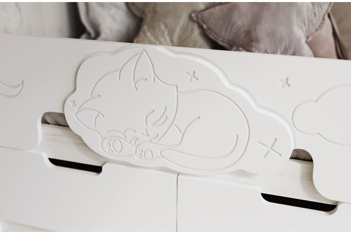 - Уникальный и милый дизайн: Защитный бортик с апликацией спящего котенка не только выполняет свою практическую функцию, но и добавляет в интерьер детской комнаты очарования и уюта. Этот нежный элемент станет любимым детским акцентом, который точно понравится вашему малышу.