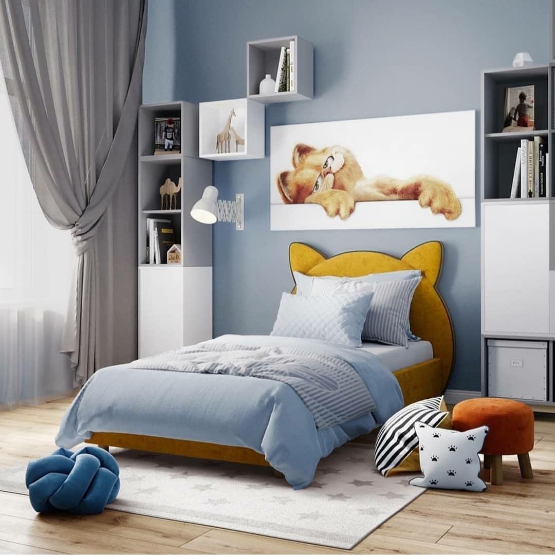 Необычный дизайн и яркий окрас сделают атмосферу спальной комнаты более уютной и позитивной. Обивка изделия очень мягкая и приятная на ощупь, она будто плюшевая. Ортопедический эффект матраса, выполненного в белом цвете, помогут позвоночнику ребенка развиваться правильно. Сон будет комфортным и крепким.